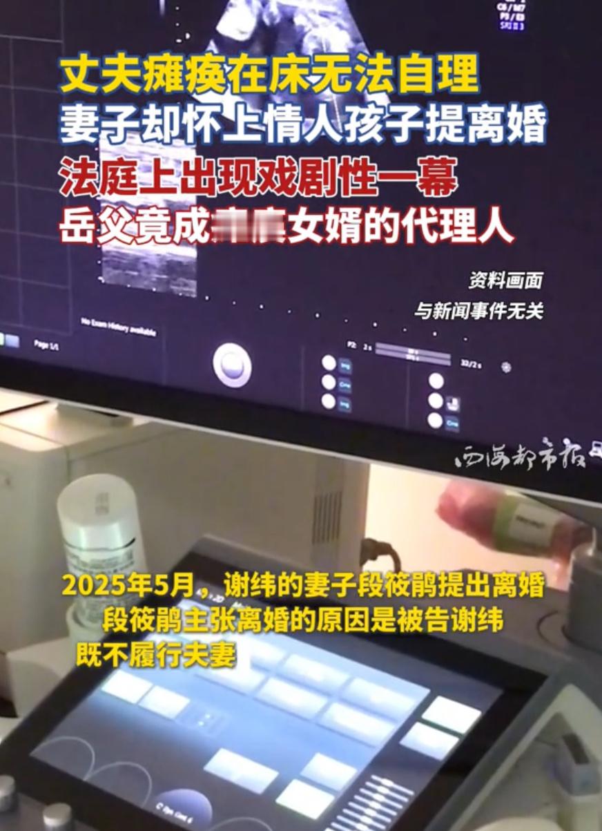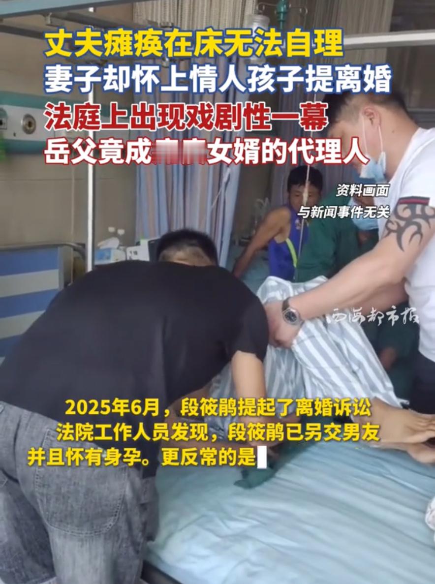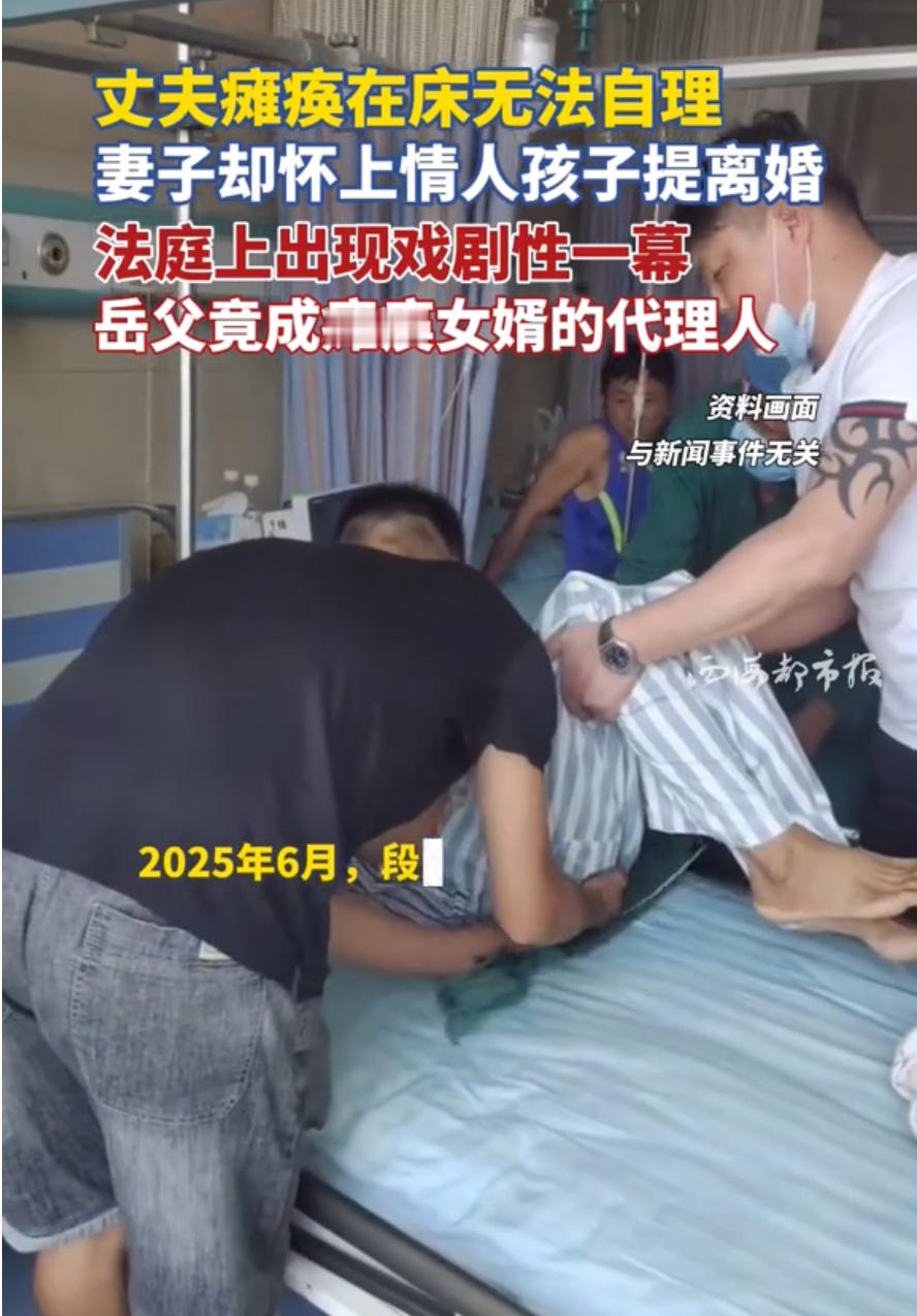 女子在丈夫瘫痪期间出轨并怀孕德阳一男子瘫痪两年,妻子竟婚内出轨怀孕,还起诉离婚,更离谱的是,岳父成了他的法定代理人,一边帮女儿打离婚官司,一边称他是“活死人”。一边是妻子以“不履行夫妻义务”为由提离婚,一边是她婚内出轨的实锤,法律与道德的边界被狠狠撕裂。谢纬自幼身世坎坷,如今成了无民事行为能力人,在婚姻纠纷中毫无还手之力。岳父既是亲属又是代理人,明显利益冲突,暴露监护制度漏洞。法院尚未判决,妇联、残联已介入,这场官司不仅是离婚案,更是对残障人士权益、婚姻责任的一次拷问。微评时论