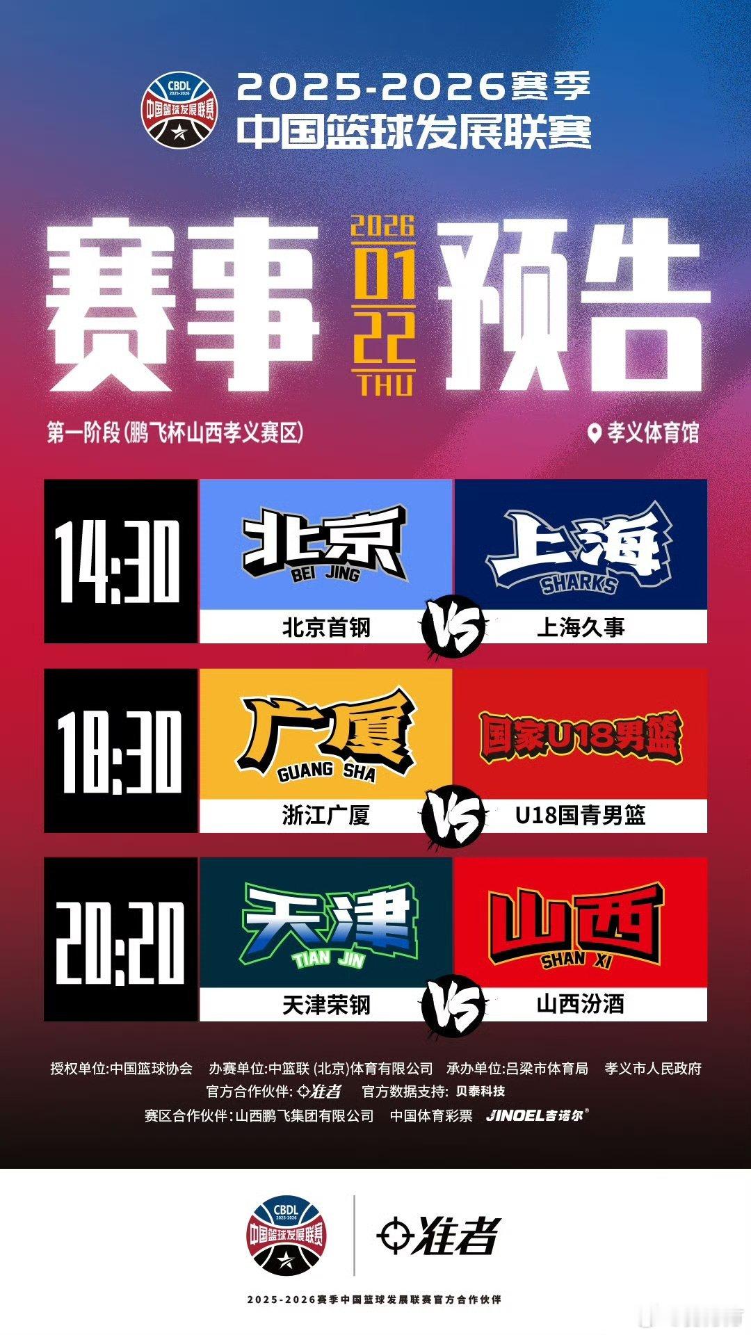 中国篮球发展联赛cbdl第一阶段山西孝义赛区今天开赛,抖抖官号直播中。北京首钢 报名名单中,姜文、张知垚留在一队,范依铭今早赶回北京,其他球员正在出赛。