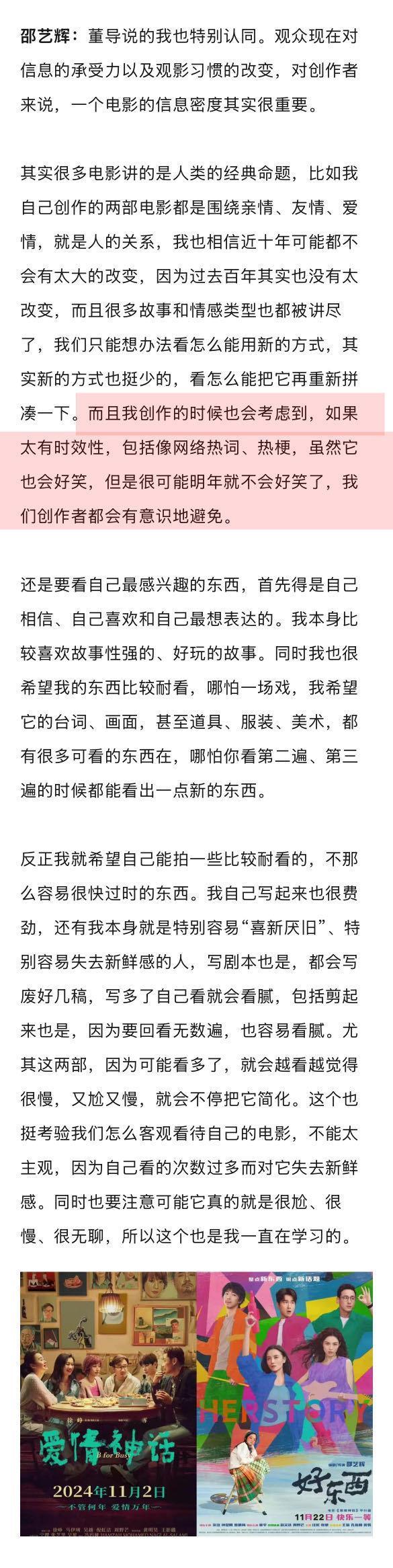王宝强说电影失败是导演的问题 华策说寻秦记的票房超出预期 在第15届海峡两岸暨香港电影导演研讨会上,邵艺辉分享表示:很多电影讲的是人类的经典命题,比如我自己创作的两部电影都是围绕亲情、友情、爱情,就是人的关系,我也相信近十年可能都不会有太大的改变,因为过去百年其实也没有太改变,而且很多故事和情感类型也都被讲尽了,我们只能想办法看怎么能用新的方式…娱理独家↓