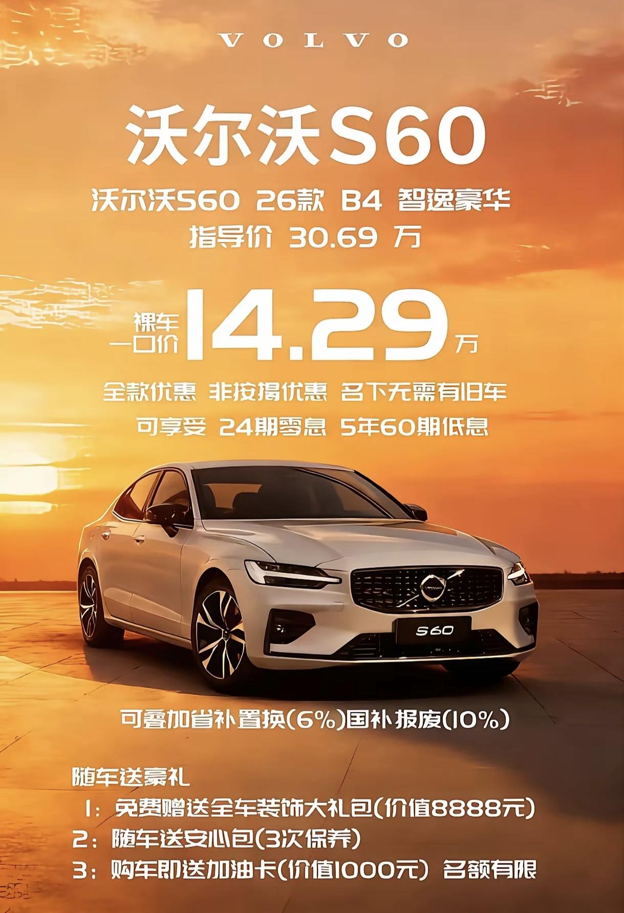 沃尔沃S60,都便宜到这个程度了。 14.29万,买一辆沃尔沃S60,开出去总