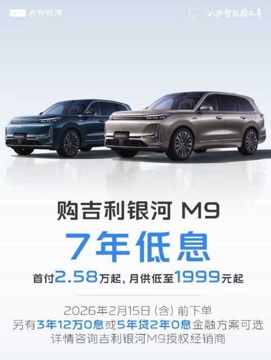 继特斯拉、小米汽车、理想汽车后,小鹏汽车(全系)、吉利银河M9也推出7年低息购车政策了。 后续应该还会有车企跟进。 为了刺激消费者买车,大家也是想各种招数,不行试试7年0息。[奸笑]【来自懂车帝车友圈】