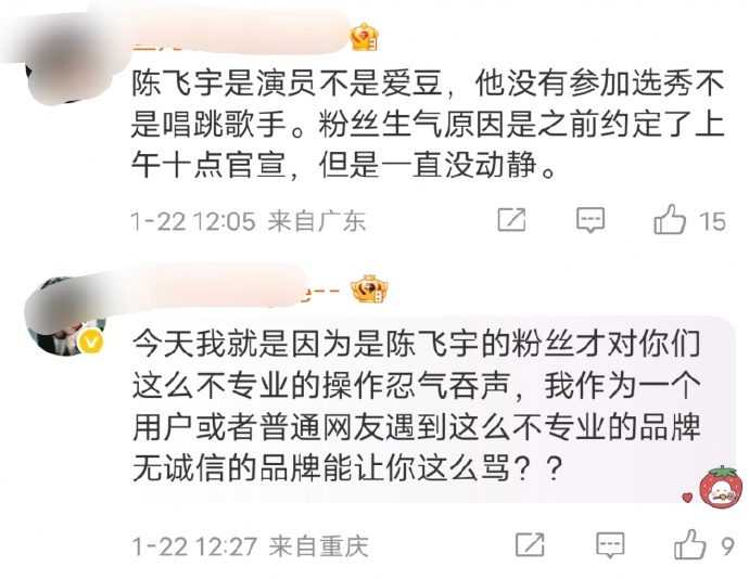 陈飞宇今天官宣新代言追觅,本来是上午10点官宣,结果推迟了1个多小时,粉丝去催,CEO下场怒怼……这个CEO气性好大啊,预热的时间是10点,粉丝肯定巴巴等着做数据呢,催一下怎么了
