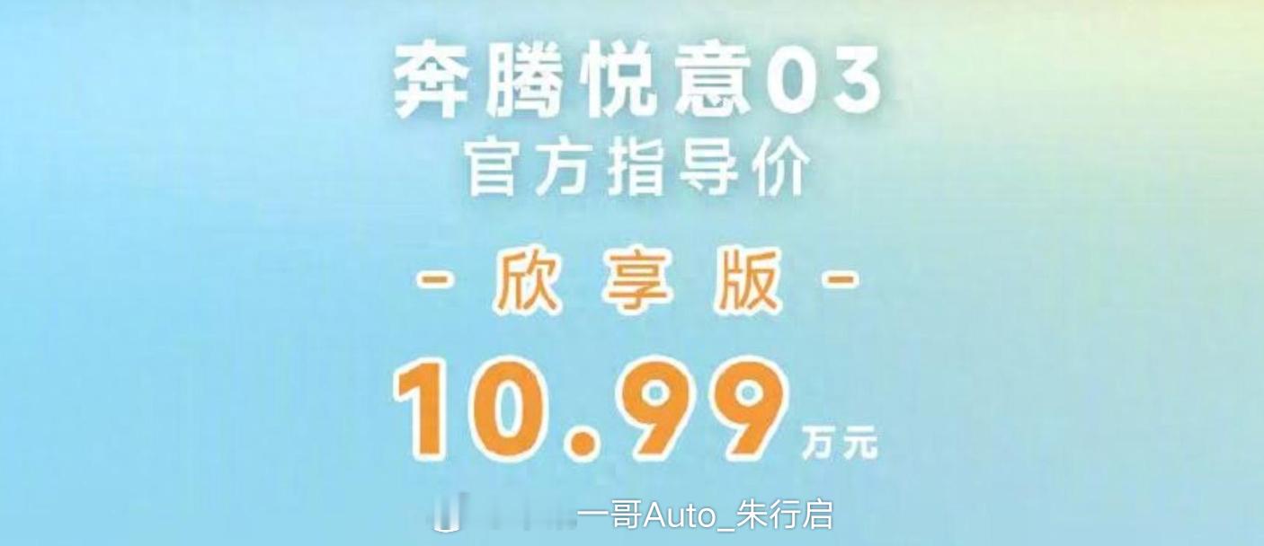 全新一汽奔腾悦意03系列的欣享版正式上市,价格定在了10.99万起售,新车增加了暖阳棕/流云灰两种内饰配色、雨量感应式雨刮、后排座椅靠背等等。新款奔腾悦意03全系搭载了前置单电机,最大功率为122千瓦,峰值扭矩200为牛·米。提供了48.35千瓦时、61.47千瓦时电池组可选,续航里程最高为565公里,不知道新车有没有增加智能驾驶辅助的功能
