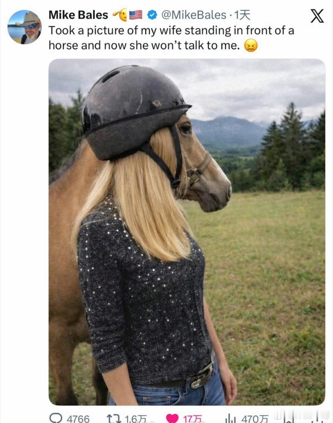 一哥们儿为他妻子和马拍摄了一张合影,外网爆火!妻子从此不再理他了。