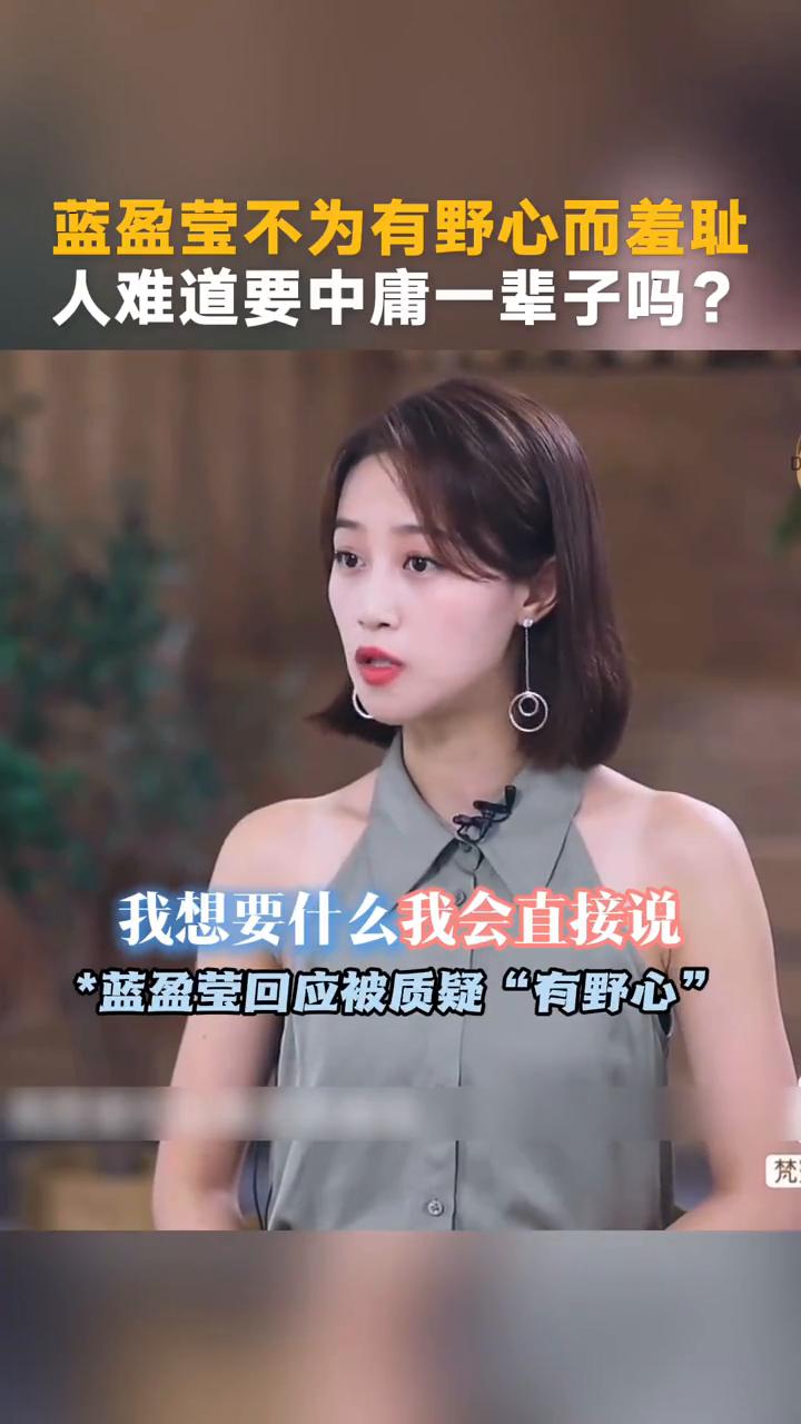 蓝盈莹不为有野心而羞耻,人难道要中庸一辈子吗? 蓝盈莹回应被质疑"有野心"。 我想要什么我会直接说,然后我会靠我的努力去争取。因为我们从小就被教育说不能太利己,要孔融让梨。我觉得说出自己的欲望,让自己成为一个更好的人,这个事情一点都不可耻。想要往前冲就一点都不可耻。 但为什么说这个社会还有大家的价值观都会说你可以这么想,但你不能这么说?你这么说就是一个有野心的人。为什么野心会变成一个贬义词?难道我们来到这个社会上就是为了给别人当配角?中庸一辈子吗?