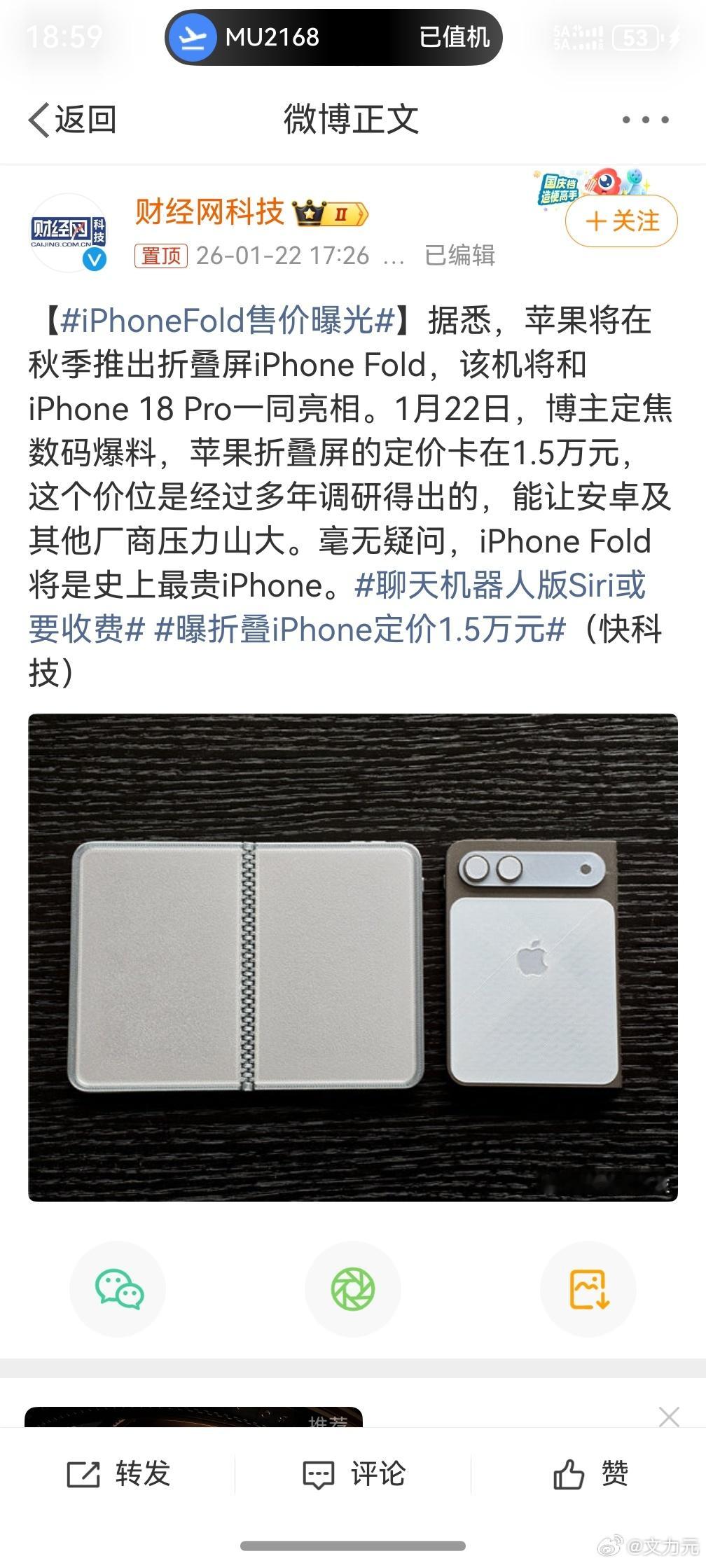 苹果iPhoneFold售价曝光 ,1.5万最右 苹果折叠屏手机的定价要真的在1.5万左右的话,竞争压力还是挺大的,毕竟折叠屏手机市场已经经过了前几年的厮杀,现在价格已经略有下降了且稳定了。