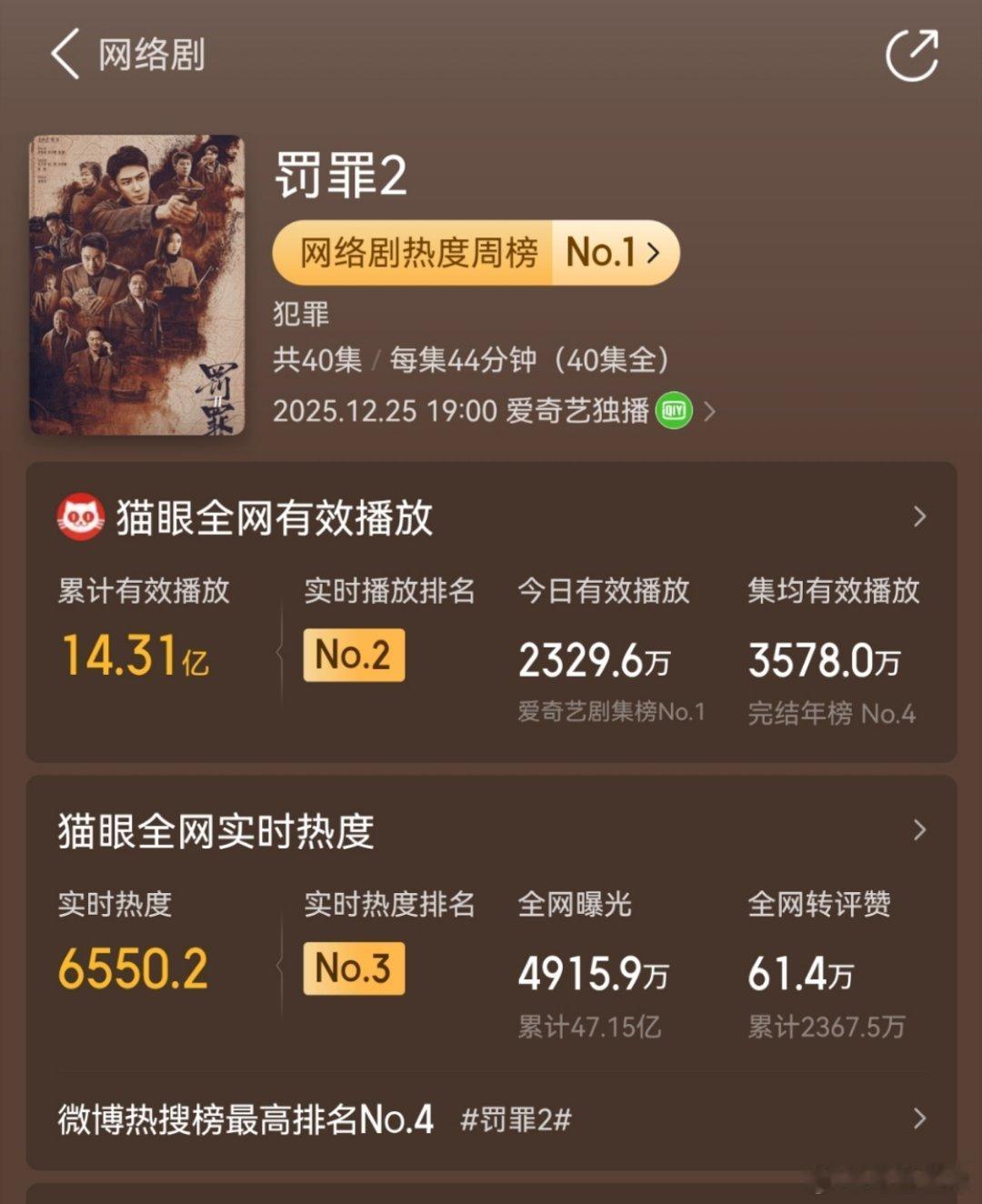 4周10.72亿集均2680万的是云合,酷云3周就10.15亿了,灯塔11.6亿,集均2896.3万,猫眼14.31亿,集均3578万。罚罪2黄景瑜秦枫黄景瑜罚罪2 数据都是浮云,我只是用来证明一个真理就是——我说好看就是好看!!!