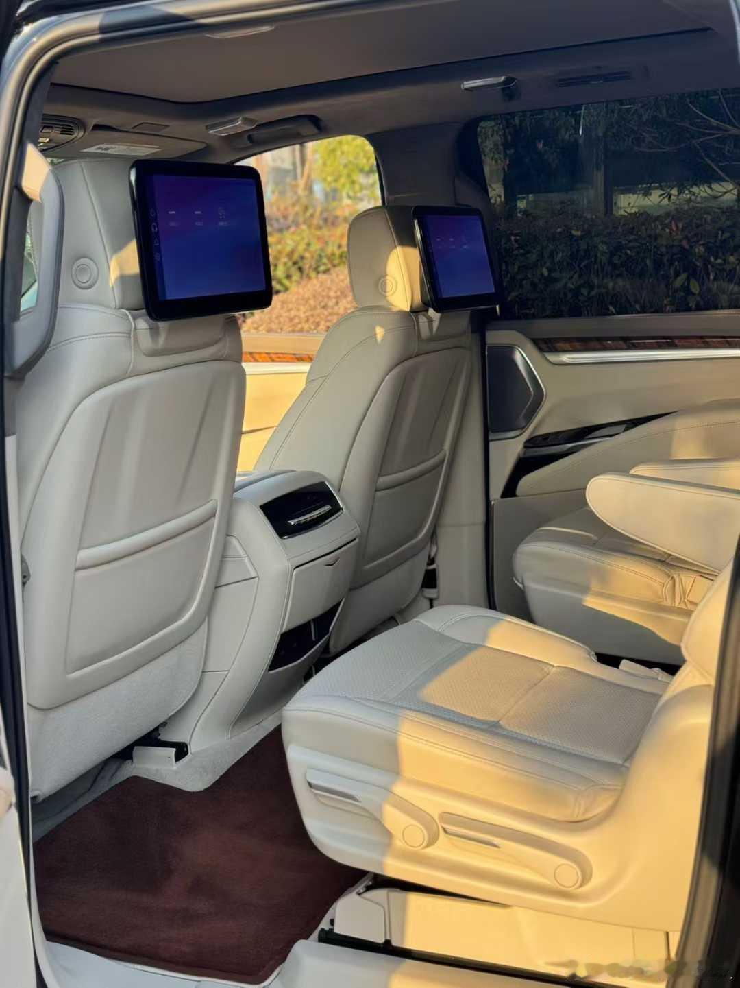 凯迪拉克凯雷德铂金加长版,选配:24轮底升 电磁悬架 电吸 电动门 电踏后娱36扬声器 前排按摩 腰托 翻毛皮顶 小牛皮冰箱 夜视 AR实景景 流媒体后视镜 超级巡航拖车辅助 备胎