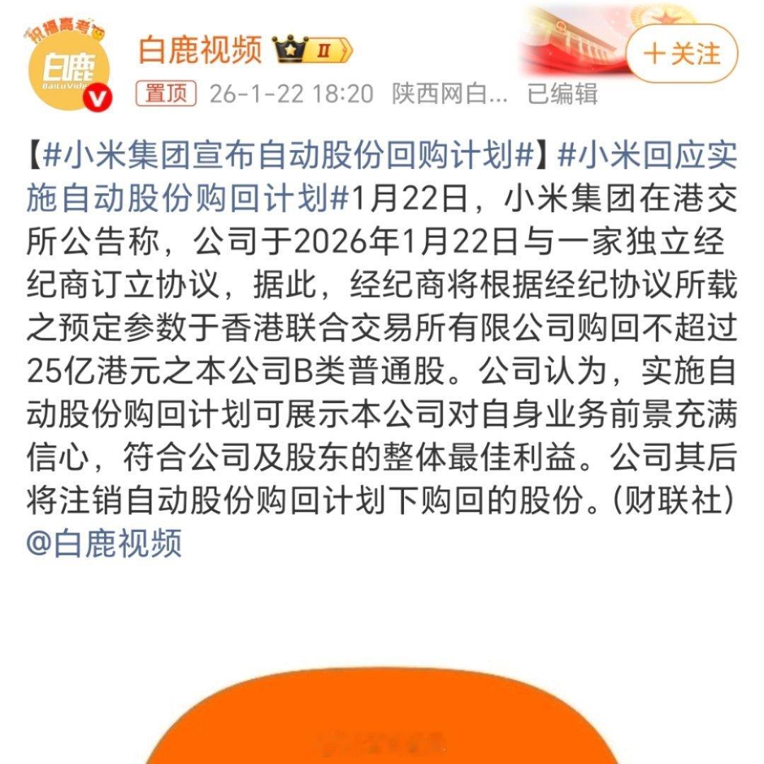 小米集团宣布自动股份回购计划我这港股通就是为小米开的,今天正好满足了条件20个交易日50万以上资产,明天找机会抄底,应该不会再亏了吧,主力也在这个价格回购的小米启动最高25亿港元回购计划
