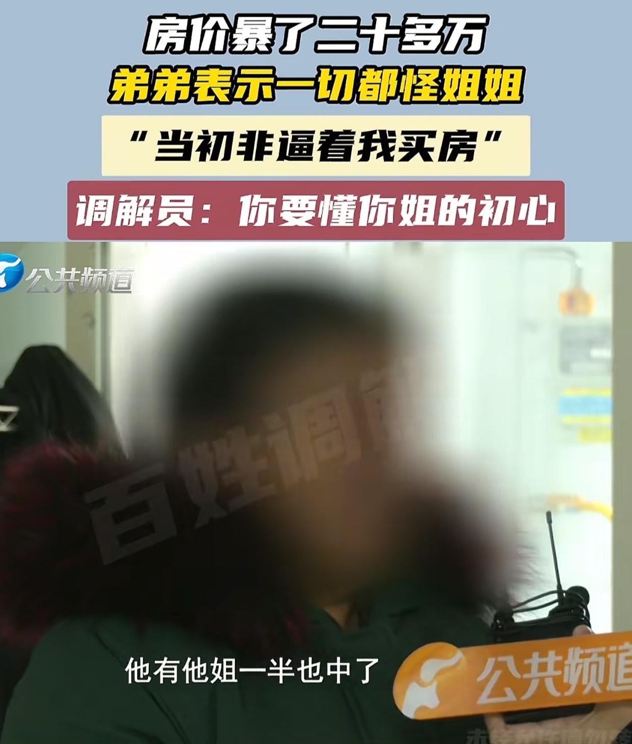 河南,女子每月给30多岁的弟弟开6000元工资,还赞助几十万帮他买了套公寓。谁知自己买房仅仅花了弟弟一万多,弟弟气得躺平不干了,怒怼:你办事儿都不会办! 10几年前,女子到郑州打工,结婚生子后日子有了起色,就把在老家拾废品为生的母亲和没有工作的弟弟接了过来。 考虑着弟弟以后结婚需要房,女子在2019年买了套公寓让弟弟住,连首付和贷款以及装修花了30多万,基本都是女子掏的,弟弟只参与了少量还贷。 谁知接下来房价下跌,几年过去这套公寓只值10来万了,弟弟怪她做了错误决定,因此对她有些怨恨,但女子表态,亏的钱都算我的,又不用你还。 弟弟跟着女子的老公送快递,女子每月给他开6000元工资,后来女子担心弟弟大手大脚都花掉,就要求每月扣2000元让母亲拿着,并且经常教育弟弟,要知道攒钱娶媳妇。 可是接下来女子为了让母亲有个地方住,又花钱在自家2楼买了套小房子,因为钱不凑手,没打招呼就把弟弟存的那笔钱用了1万多。 弟弟得知后非常生气,认为自己不被尊重,干脆往床上一躺每天玩游戏,连着20多天没有出去工作。 女子和母亲急坏了,左劝右劝也没用,情急之下只好联系了调解员。 调解员赶到后,女子诉说了自己多年为弟弟操的心,说到自己为了多挣钱还房贷,曾经在怀孕时送快递累得晕倒,女子哭了。母亲也承认,女儿很好很能干,儿子不及她的一半。 听到姐姐以及母亲的诉说,弟弟完全是一副不领情不认同的态度,言辞冷漠拒绝和解,直言她们无法沟通。 经过调解员再三开导,女子又对擅自用他一万多元的事情道歉,表示会把钱还上,并且不再过多干涉他的生活,事情才有了一个勉强的解决。弟弟表示,以后会自己找个工作,独立起来。 看到视频,很多网友说,这是一个“扶弟魔”姐姐,遇到了一个白眼狼弟弟。 说实话,女子确实是个好姐姐,有责任感愿意付出。但错在所有有关弟弟的重大决策都是她做的,没有经过弟弟同意,忽略了弟弟也是个独立的人,你给的未必是他想要的。 女子永远冲在前面,弟弟永远不会成长,而且在强势能干的姐姐面前,他会觉得自己是个失败的弱者,这就是为什么大家觉得本应感恩的他,对姐姐的做法表示如此抗拒和反感。 也许弟弟以后出去工作了,经历了一些人生的风雨,能对人生以及家人的付出有更多的思考,才会理解姐姐的爱和苦衷吧。