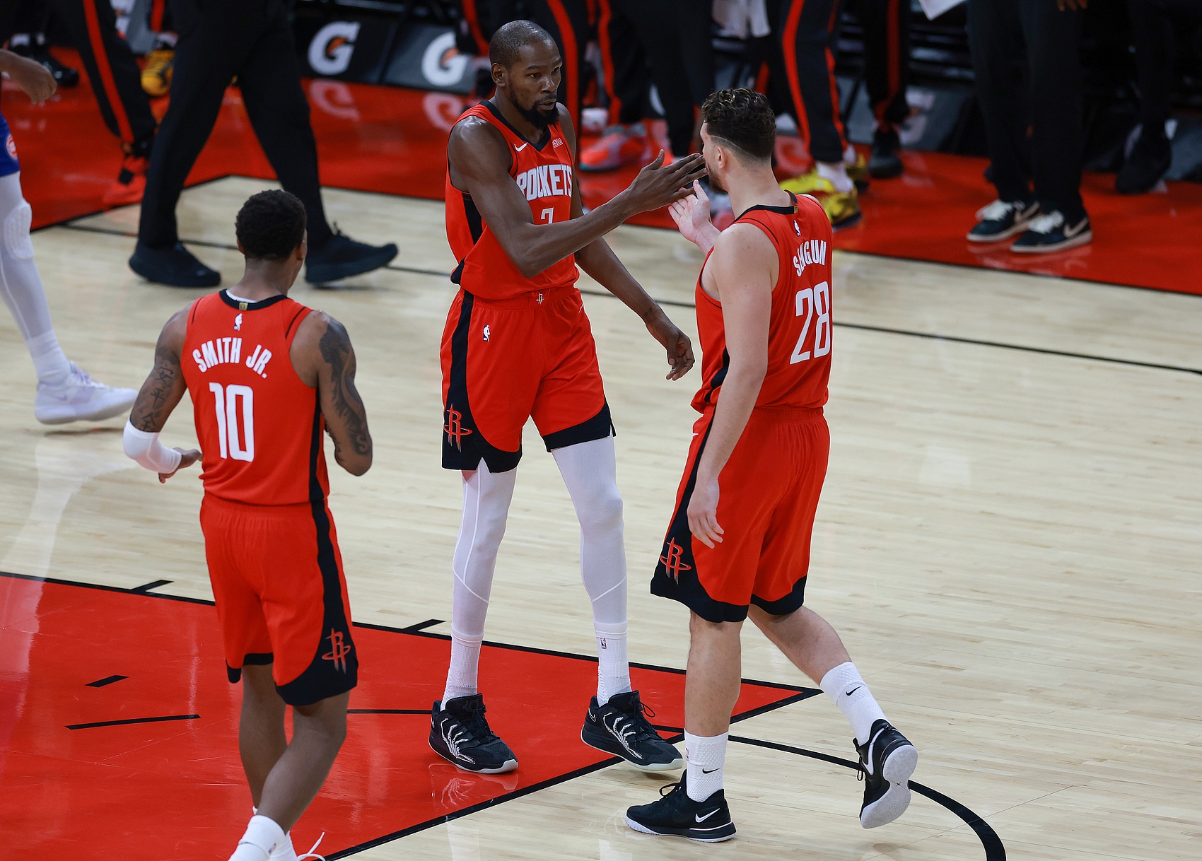 火箭队最近5场比赛都是主场作战,不过火箭队的战绩可以说是相当的出色。对阵公牛队,火箭队119:113战胜对手。虽然对阵雷霆队,火箭队最终20分惨败,但是火箭队只是在第4节崩盘,前三节火箭队只落后两分,可以说还是有和雷霆队掰一掰手腕的实力的。另外三场比赛火箭队分别战胜了森林狼队、鹈鹕队以及圣安东尼奥马刺队。5场比赛下来火箭队拿到了4胜1负的战绩。现在大家都知道火箭队的主场战绩非常好,他们也是所谓的主场龙,一旦回到主场,火箭队就能够战胜任何对手。火箭队现在的主场胜率高居联盟第二,仅次于雷霆队。虽然未来火箭队有很多的客场比赛,但是我们也希望火箭队能在客场拿出主场的气势和表现,赢得更多比赛。