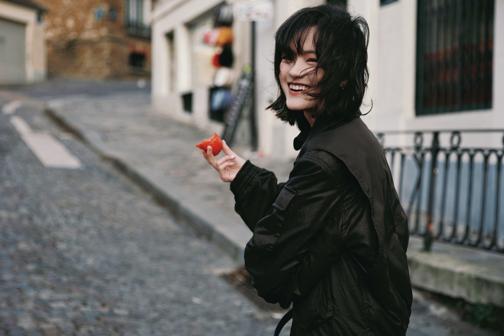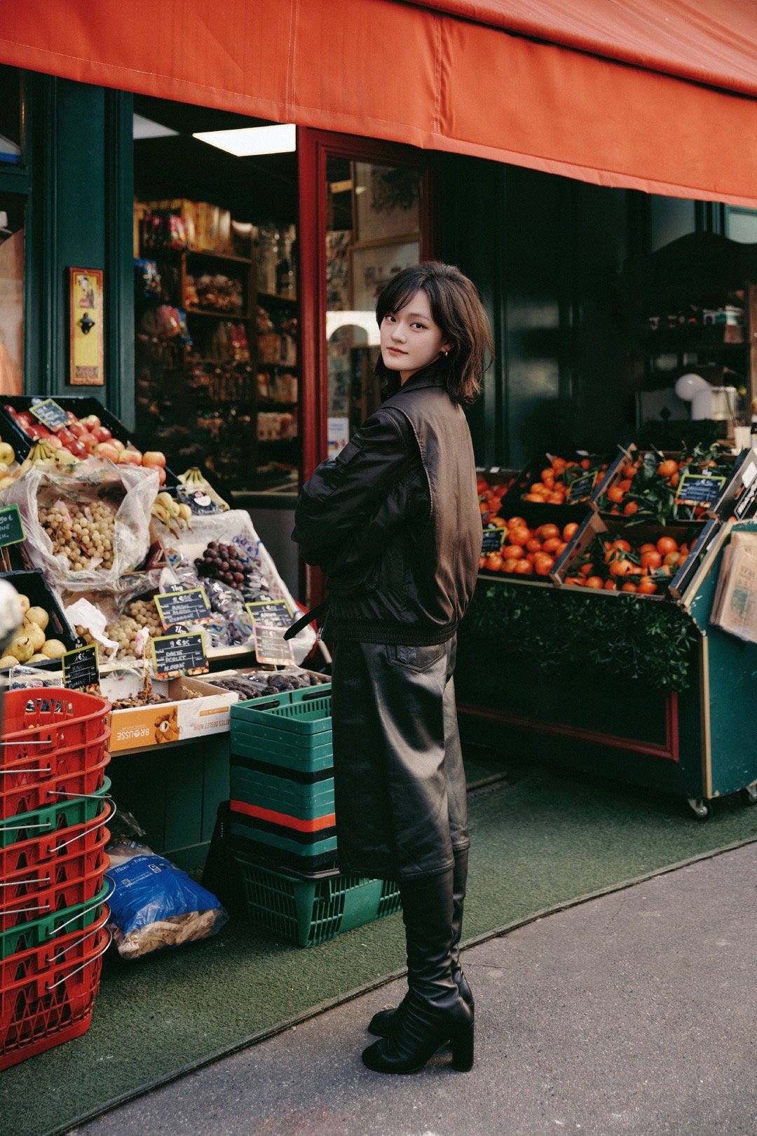 文淇好有生命力的美 文淇的美是流动的,像巴黎街头的风。她在杂货店挑选、在转角回眸,每一个瞬间都带着故事感。那不是被观赏的静物,而是鲜活的、自带BGM的景色本身。