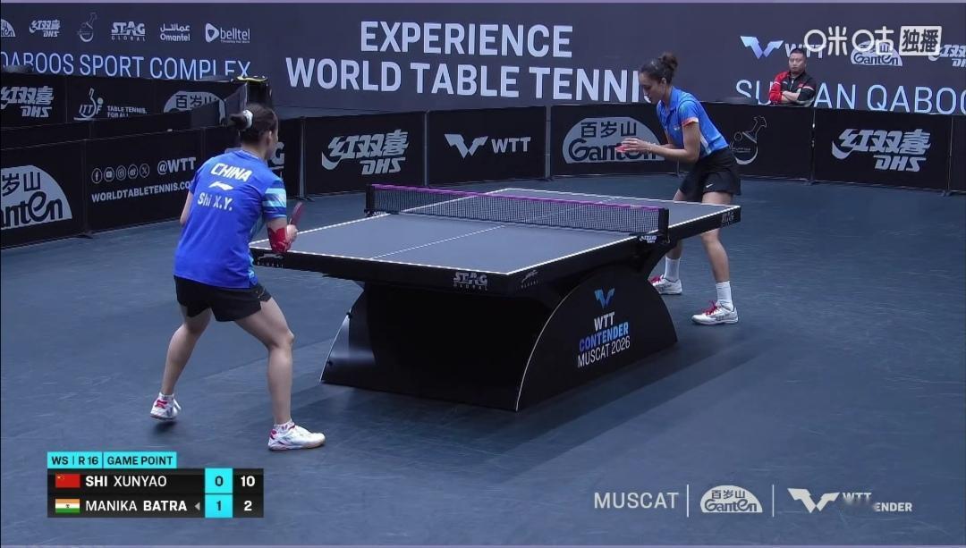 石洵瑶3:2,决胜局、两分绝杀印度特殊打法巴特拉,晋级八强! WTT马斯喀特常规挑战赛,女单1/8决赛。 国乒石洵瑶迎战印度特殊打法选手、人高马大的巴特拉。 连续三站比赛,小石右臂红色肌贴鲜艳夺目! 首局石洵瑶不太适应特殊打法,杀到10-12告负。然后就驾轻就熟了,轻松拿下第2、第3局! 第四局又爆分了,拼到14-16告负! 比赛被巴特拉拖到了决胜局,决胜局两分险胜! 石洵瑶让3:2(10-12;11-2;11-5;14-16;11-9)决胜局、两分绝杀印度巴特拉! 恭喜石洵瑶晋级女单八强!