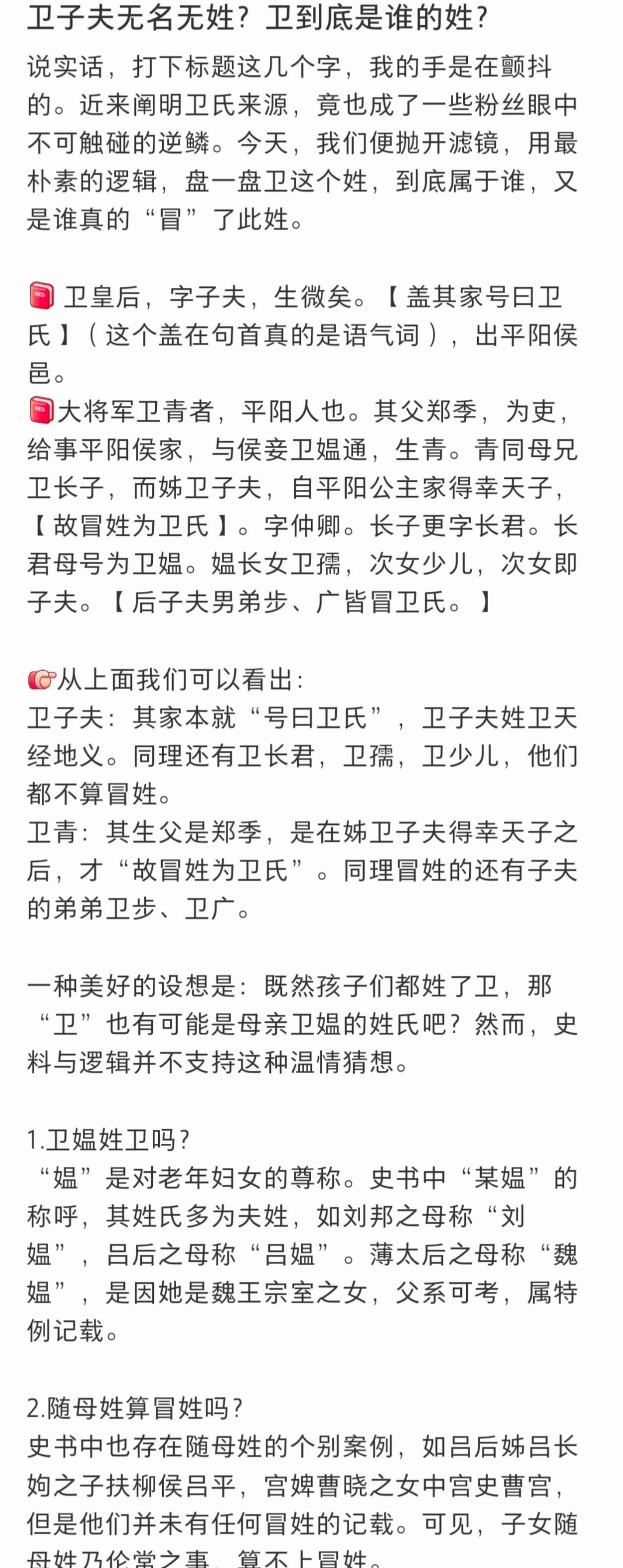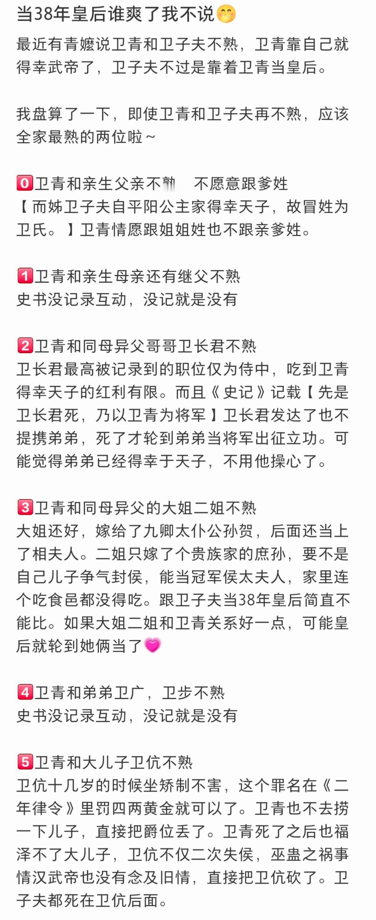 好佩服汉武圈什么都能吵起来一点不死气沉沉还能刷到卫青卫子夫姐弟两家粉因为卫姓吵架