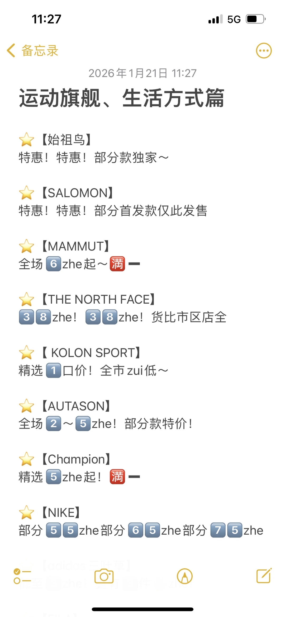 始祖鸟、萨洛蒙、猛犸象、迪桑特、可隆、火柴棍、凯乐石、北面、安踏、李宁、匡威、NB、冠军……等运动旗舰精选特惠/低至6️⃣zhe/部分三件5️⃣zhe~