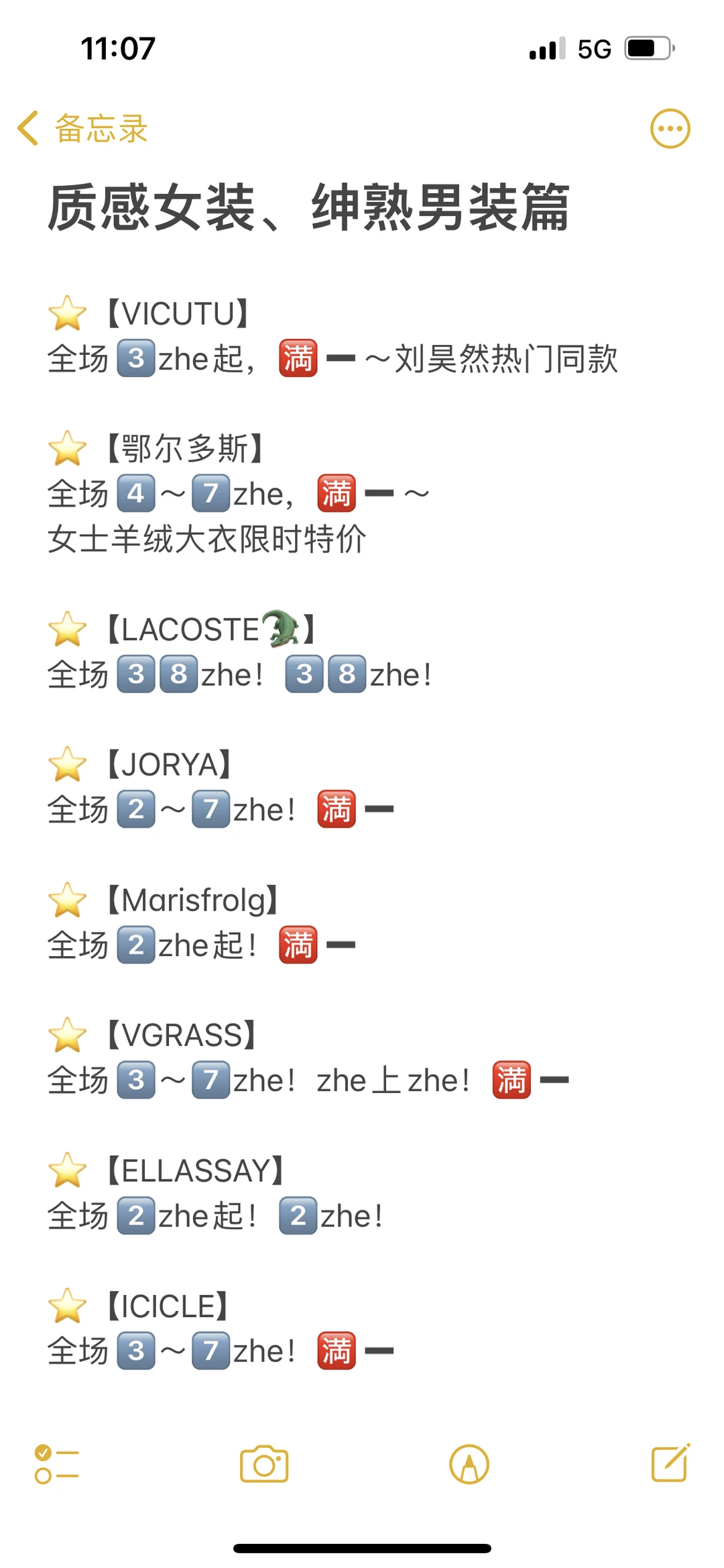 VICUTU、鄂尔多斯、LACOSTE、JORYA、Marisfrolg、VGRASS、ELLASSAY、ICICLE、PORTS……等质感女装👚、绅熟男装🤵🏻♂️全场2️⃣~7️⃣zhe~