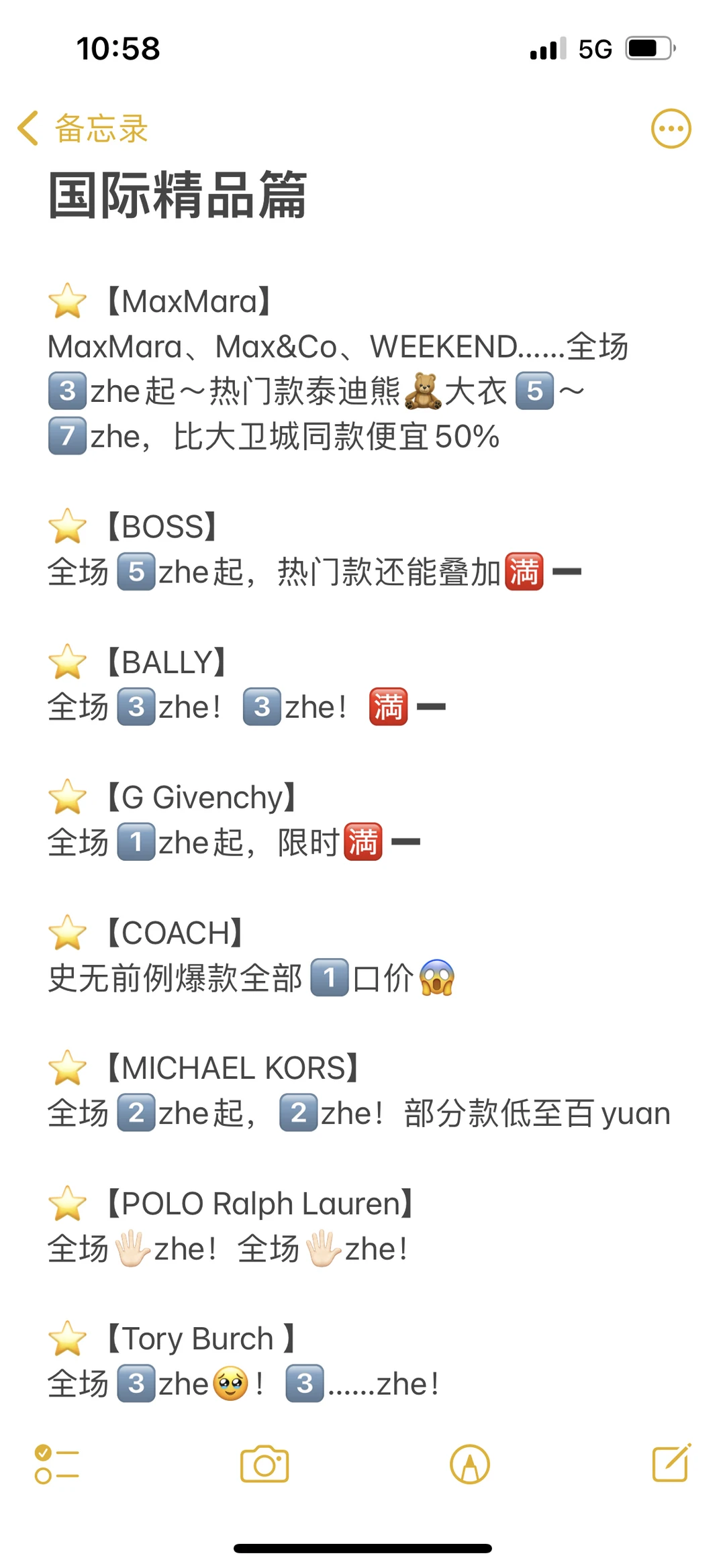 MaxMara、BOSS、POLO Ralph Lauren、COACH、MK、THOM BROWNE、TORY BURCH、BOSS、BALLY、GUCCI(集合店)、BURBERRY(集合店)……等国际精品全阵容全场1️⃣、3️⃣、5️⃣zhe、精选爆款1️⃣口价~