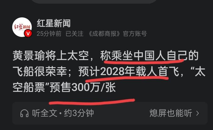 我们自己的商业太空旅游,2028年将首飞!300万一张的太空船票,真的不是有钱就可以上的啊! 以前我们经常看到老美那边的富豪们坐着马斯克家的太空飞船,到太空感受零重力,一直在想,我们的太空旅游到底什么实现呢?毕竟看到我们的宇航员身体条件需要那么好,训练要那么严格,普通人的感觉要“上天”真的太难了! 但如今我们自己商业太空旅游也快实现了,首批报名的有院士,有演员,还有企业家等等。 300万的太空船票,先付定金,关键还是民营的企业的飞船起飞,所以报名太空旅游的人不仅要有钱,还要有足够的勇气啊,毕竟第一次啊太空一日游 太空旅行成本 太空旅游船票 太空门票