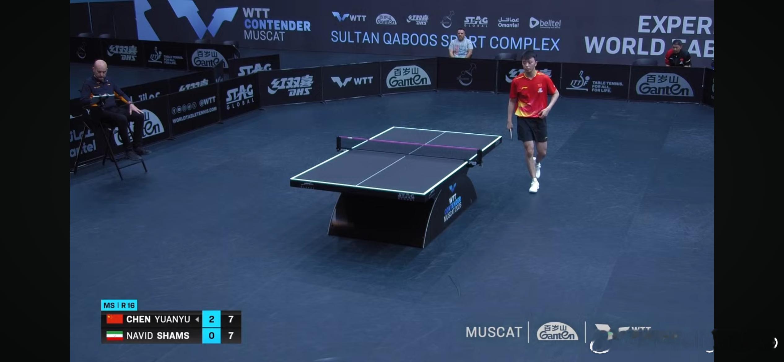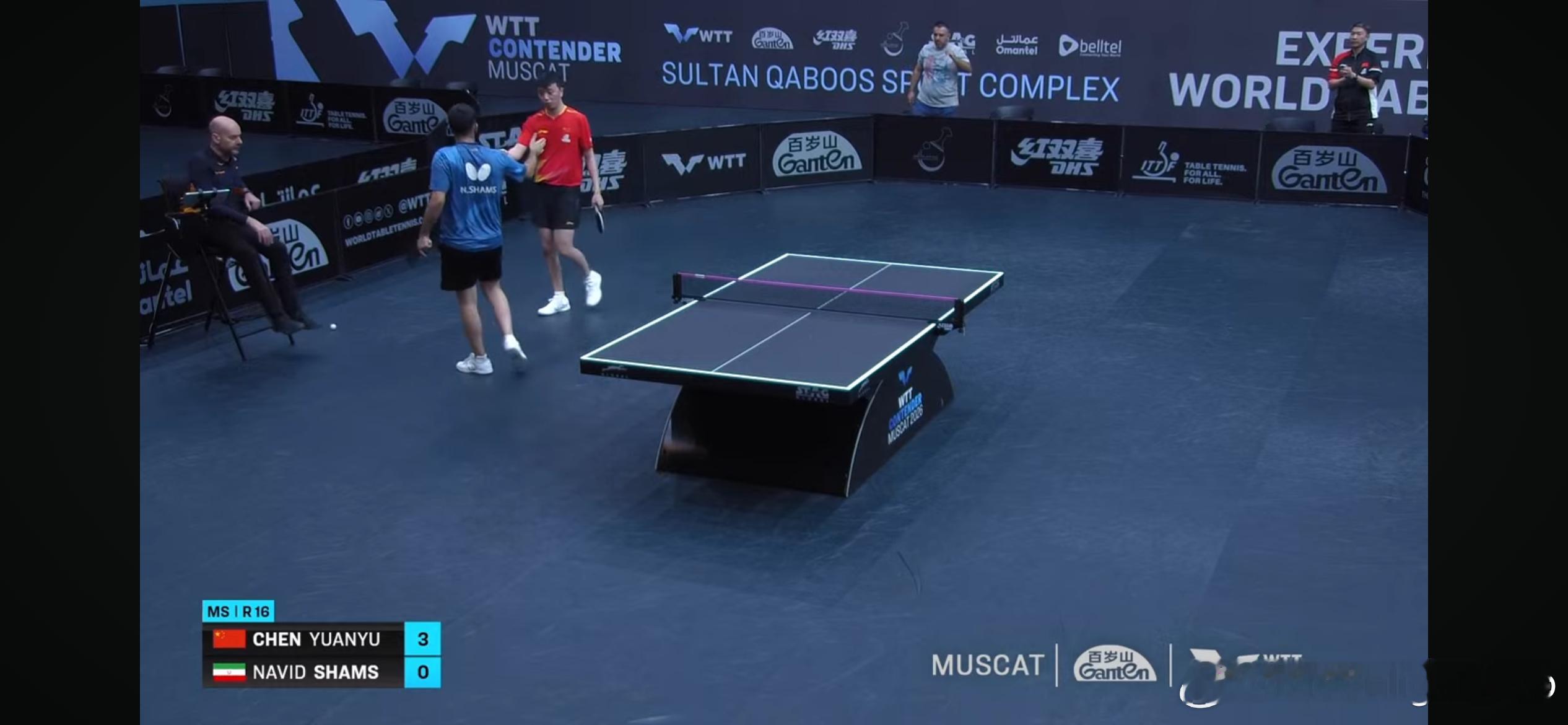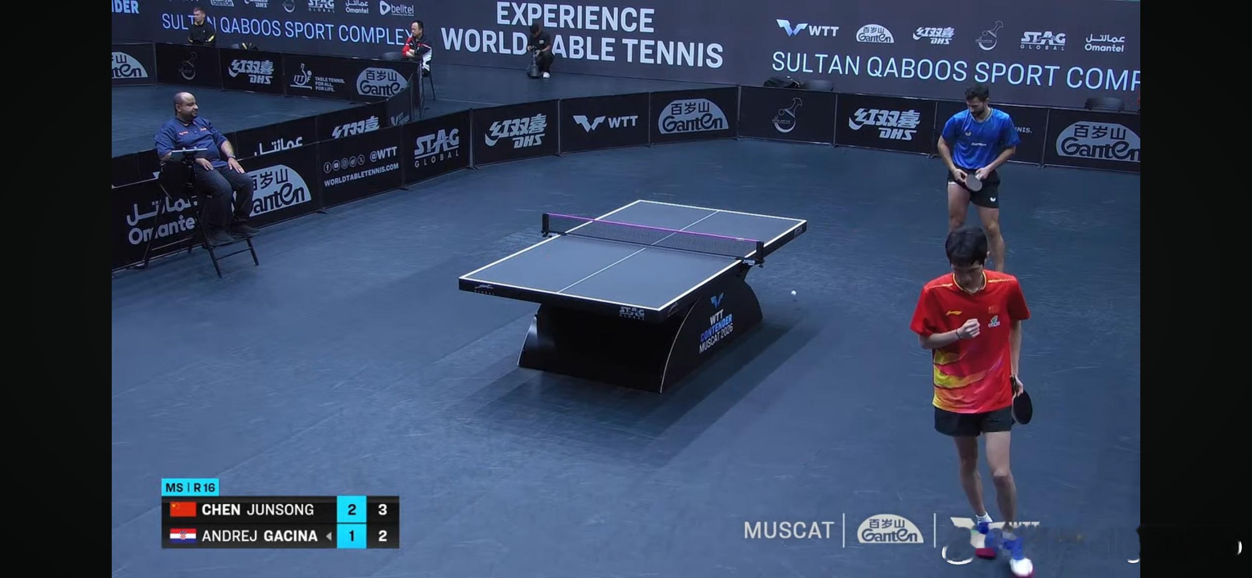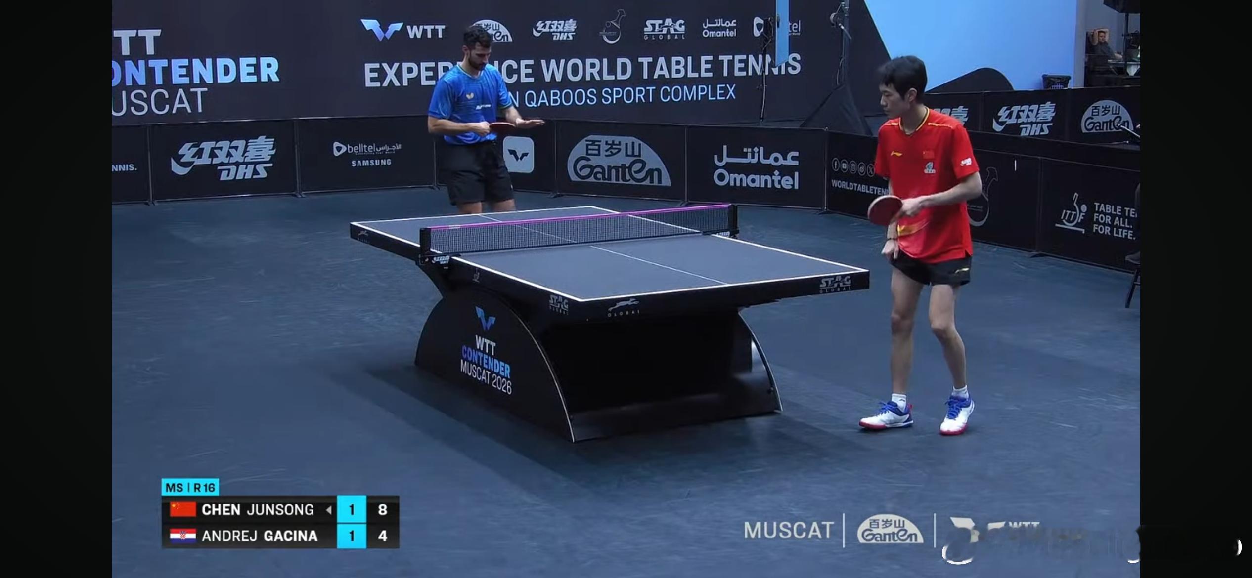 WTT常规挑战赛马斯喀特站2026 男单1/8决赛:🇨🇳陈垣宇3比0纳维德·沙姆斯🇮🇷(11-3,12-10,11-9)下一轮🆚安东·卡尔伯格🇸🇪🇨🇳陈俊菘3比1安德烈·加奇尼🇭🇷(11-7,7-11,11-6,11-5)下一轮🆚温瑞博🇨🇳