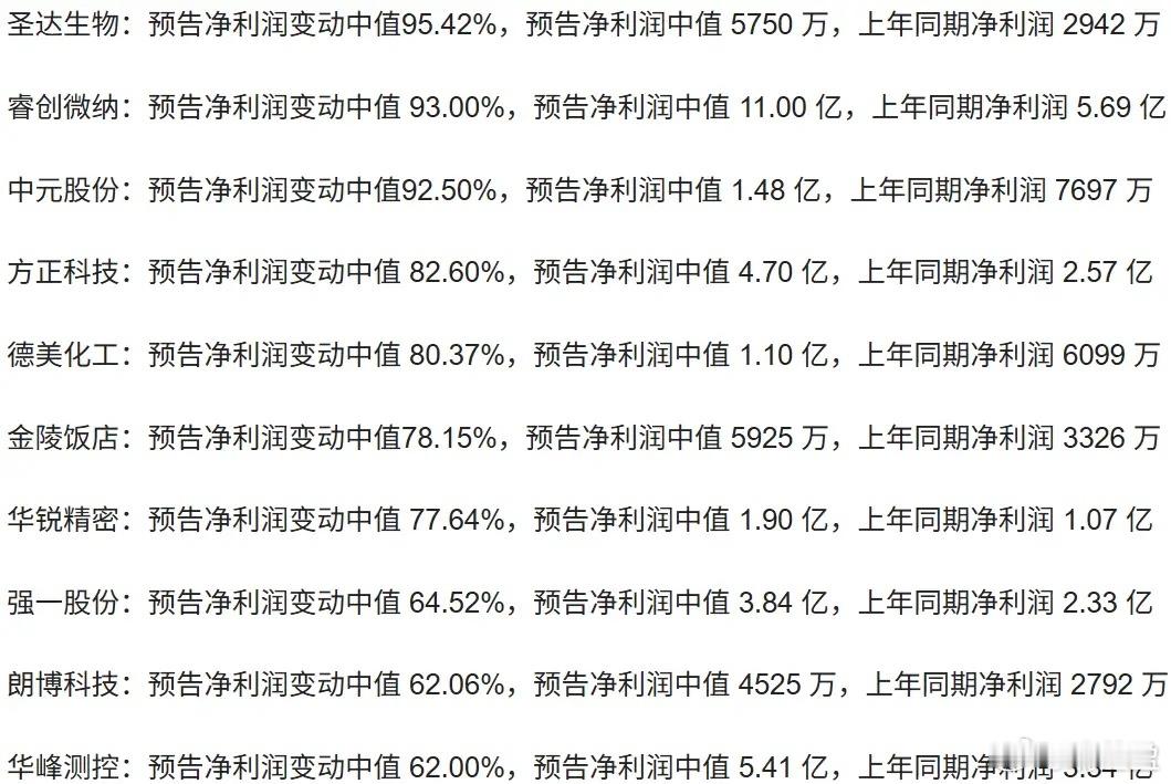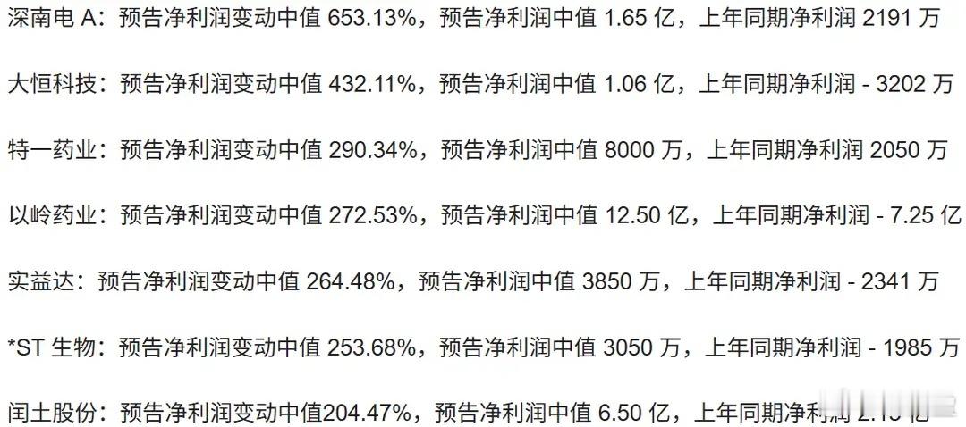 深夜迎来A股利好消息,31家上市公司集中披露年报业绩预告,均实现净利润预增,量子科技、中药、芯片三大赛道的龙头企业更是迎来业绩翻倍的亮眼表现。近期A股市场整体震荡整理,但上市公司年报预增的积极信号持续释放。此次31家业绩预增的企业中,量子科技、中药、芯片领域的龙头悉数在列,成为业绩增长的核心看点。从业绩增幅维度来看,净利润同比增幅超200%的企业共有7家。其中,兼具量子科技与机器视觉双重龙头属性的大恒科技表现尤为突出,年报净利润预增中值达432%,预计净利润中值超1亿元,而公司去年同期净利润为-3200万元。该公司此次业绩大增源于主营业务的实质性增长,业绩含金量较高。中药龙头以岭药业同样交出亮眼答卷,净利润同比大增272%,预计中值达12.5亿元,去年同期则亏损7.25亿元。去年公司因计提到期药品减值、感冒药销量大幅下滑导致业绩亏损,今年随着产品销售触底回升,业绩实现快速修复,其股价也从周线走势来看逐步走出低谷。净利润增幅在100%-200%区间的企业共计12家。模拟芯片龙头思瑞浦实现业绩扭亏为盈,去年同期亏损1.97亿元,今年预计净利润中值1.75亿元,增幅接近200%,核心得益于公司产品在AI光模块、新能源、电网等领域的需求增长与营收提升。军工及培育钻石龙头中兵红箭年报净利润预增超100%,预计中值4000万元,该公司三季度仍亏损近6000万元,据此测算四季度单季净利润约1亿元,业绩环比改善显著。净利润增幅处于50%-100%区间的企业有10家。光模块、PCB领域细分龙头方正科技位列其中,年报净利润预增中值82%,预计中值4.7亿元,人工智能与算力产业的蓬勃发展,成为带动公司相关业务增长、推动业绩提升的核心动力。此外,还有2家企业净利润增幅低于50%。捷昌驱动预计净利润变动中值47.50%,中值4.16亿元,上年同期为2.82亿元;存储芯片龙头兆易创新净利润预增中值46%,预计中值16.10亿元,上年同期为11.03亿元。兆易创新四季度单季预计净利润近6亿元,创下近三年以来的季度最好成绩,公司业绩正持续修复,叠加当前存储芯片涨价周期,未来业绩有望随行业景气度进一步提升。