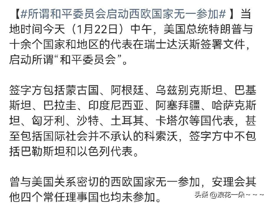 注意了! 看看吧,所谓的“和平委员会”都是哪个国家同意了,哪些国家签署文件了,都在这个第2张图片里面。 我看这些签字的国家都是希望特朗普政府能够保护他们的。西欧国家倒是挺硬的,没有一个人参加并签署文件,看来这些西欧国家对美国提出的所谓的“和平委员会”非常质疑啊。