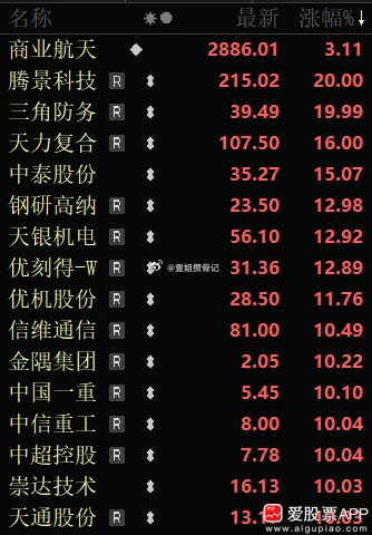 蓝箭航天科创板IPO审核变为“已问询”,这才刚受理两周多,速度是飞一般的快啊!按照去年摩尔线程9月5日“已问询”,12月5日正式上市。也就是说,最快是3个月,那么蓝箭4月底就可以挂牌IPO了。今天商业航天板块大涨,20多家涨停,明天估计还能嗨啊!商业航天是星辰大海,国家队产业支持是3年、5年、10年的,不能2个月、3个月就把预期炒完了!这个板块后面也是走慢牛,连续涨停潮是不允许的。两个重要的机会节点,一是蓝箭航天IPO周期内,一个是SpaceX的IPO周期内,大家把握好节奏吧。