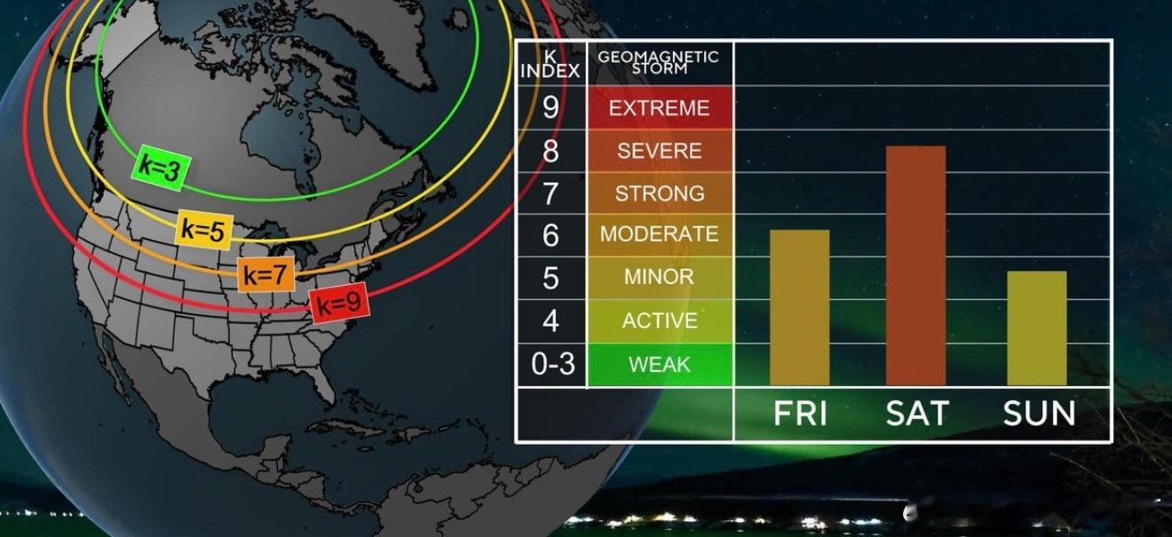 地球出现6小时特大地磁暴这波特大地磁暴,对普通人身体影响很有限,主要冲击的是系统层面:电离层被扰动后,卫星导航定位会变飘、短波与航空海事通信可能变差,低轨卫星阻力上升,电网在高纬和长距离线路上还要防地磁感应电流带来的波动;看预警就行,别被玄学吓到。图1)极光实拍图2)极光椭圆/预报图图3)Kp/G等级覆盖图图4)地磁暴等级示意地球出现6小时特大地磁暴