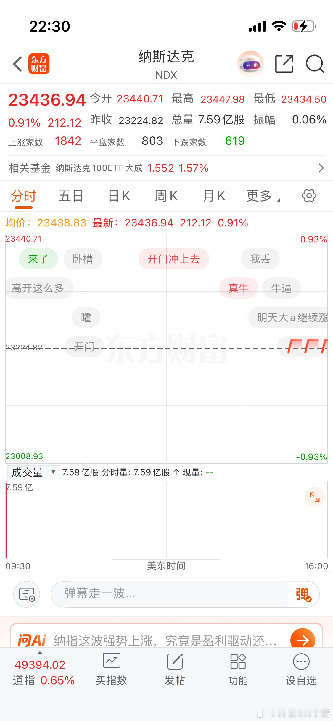 男的一旦消费起来就是穷奢极欲了男的无非就炒炒股买买基金还能坏到哪里去?各位上市公司股东们晚上好。美股今日继续反弹开心吗?纳斯达克 +0.91 纳斯达克100 +0.85生物科技 +0.10 金龙 +1.11黄金 -0.25 白银 +0.88原油 -1.15 油气 +0.14拜托大家不要只看不互动播报博主不好做。谢谢大家的支持。