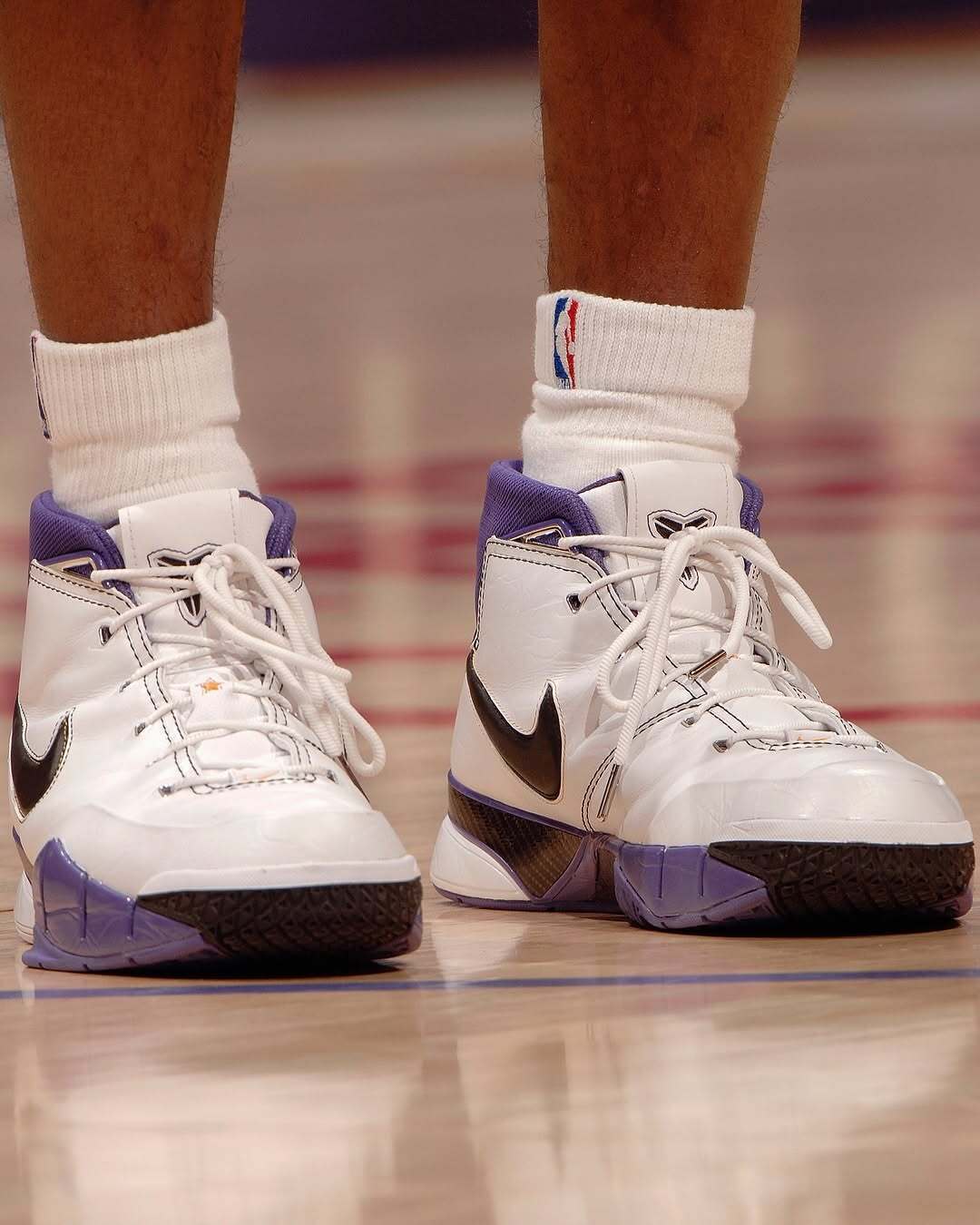 这双经典白紫配色的ZK1真是百看不厌。20年前的今天,科比面对猛龙拿到81分。——全场46投28中,三分13中7——上半场26分,下半场55分——湖人其他球员只拿到了41分——上半场结束时,湖人落后14分——下半场比赛,科比一人打了猛龙55-41科比81分20周年