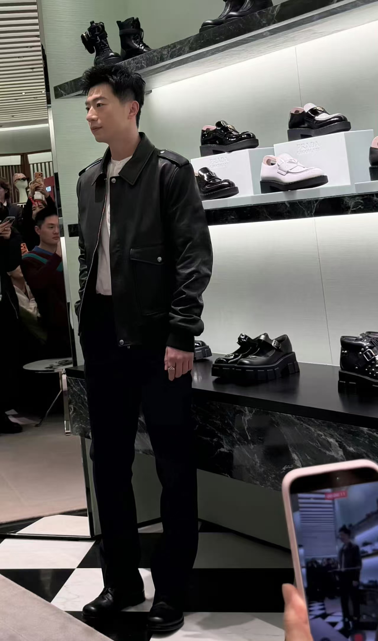 马龙Prada皮衣黑色皮衣也能穿的这么板正清爽马龙不愧是马龙
