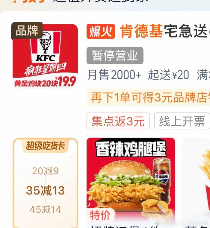 肯德基崩了确实崩了吧,外卖都暂停营业了