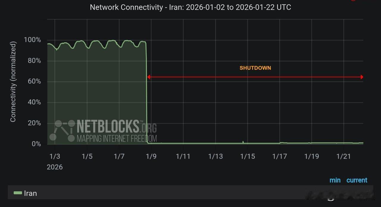 999.全球互联网监督机构Netblocks发布了一张图表,展示了伊朗互联网自1月8日晚来,封锁进入2周的现状。不过它并不中立,而是谴责伊朗当局通过网络封锁压制了伊朗民众的声音,并实施了现代史上最残酷的镇压之一。 可是它却对暴徒袭击,有组织的破坏,造成的巨大损失只字不提。这也算是西方一个喉舌吧。