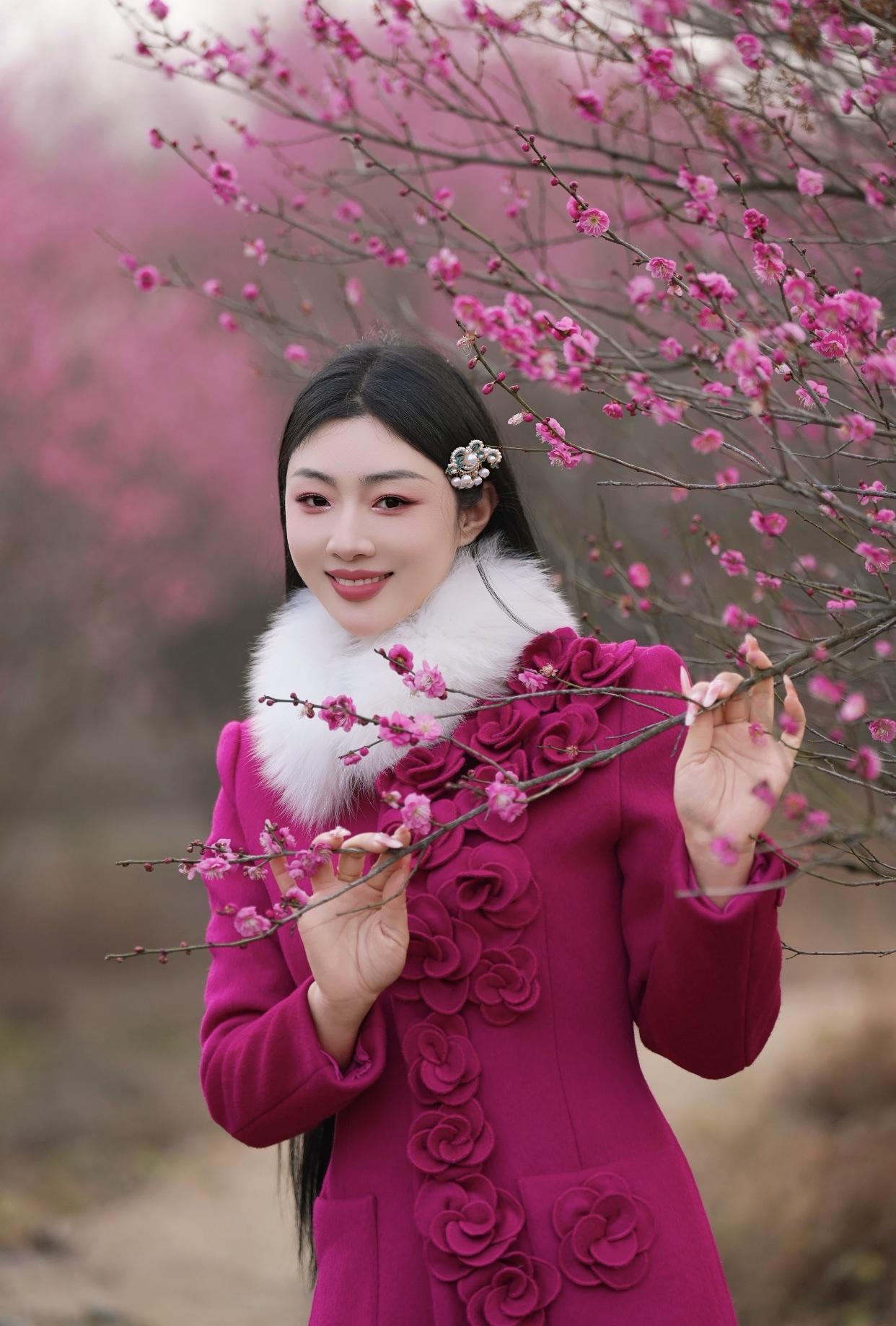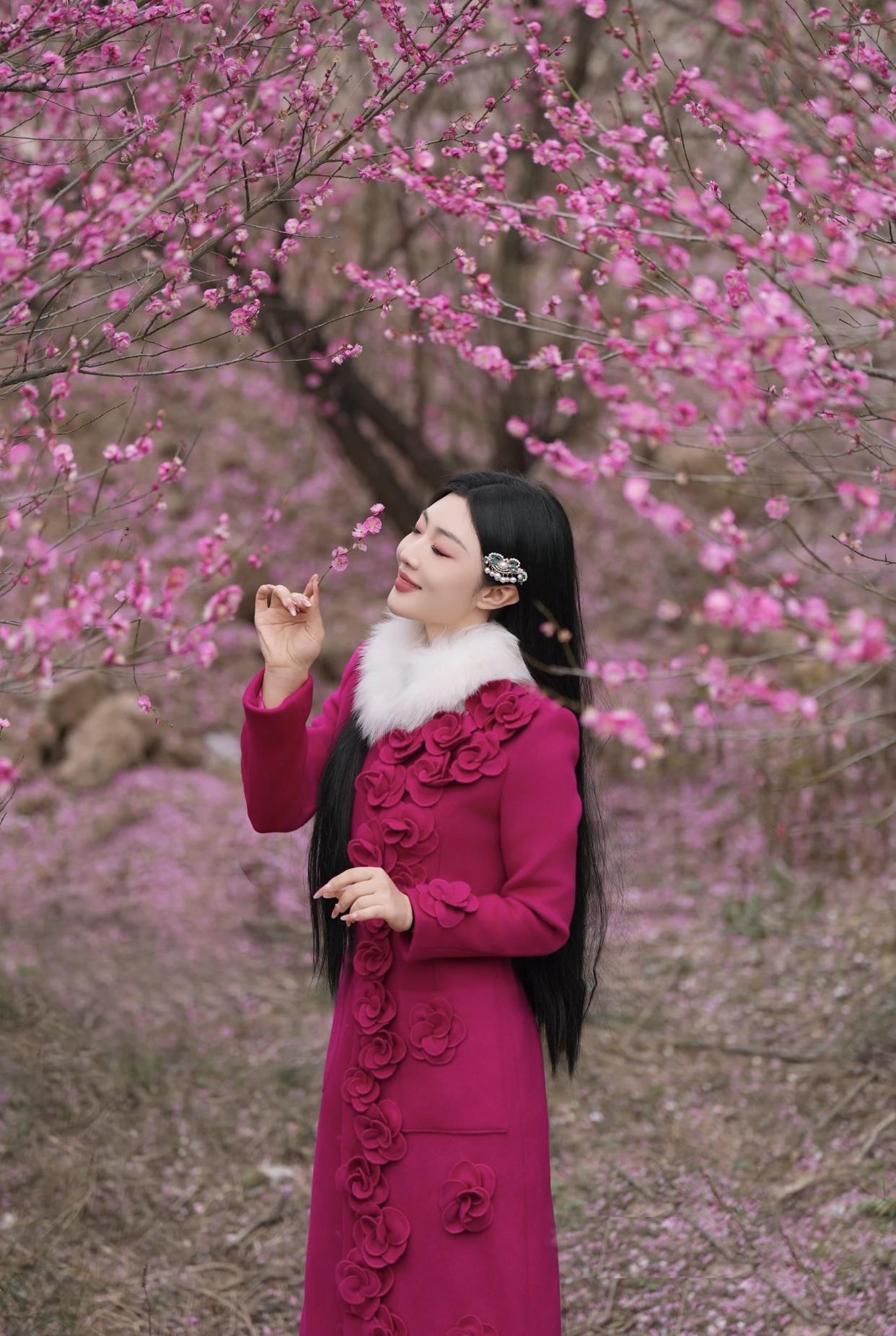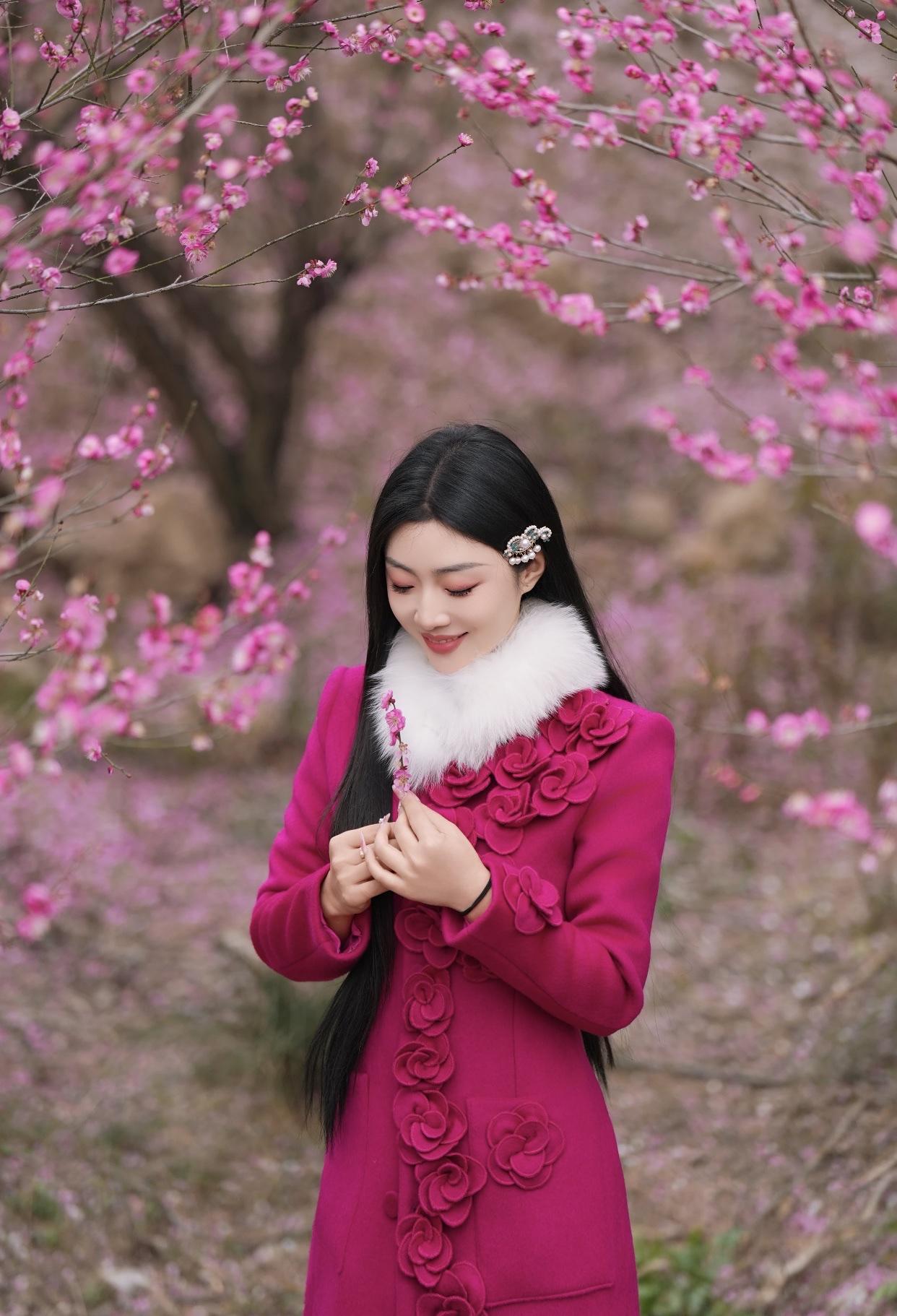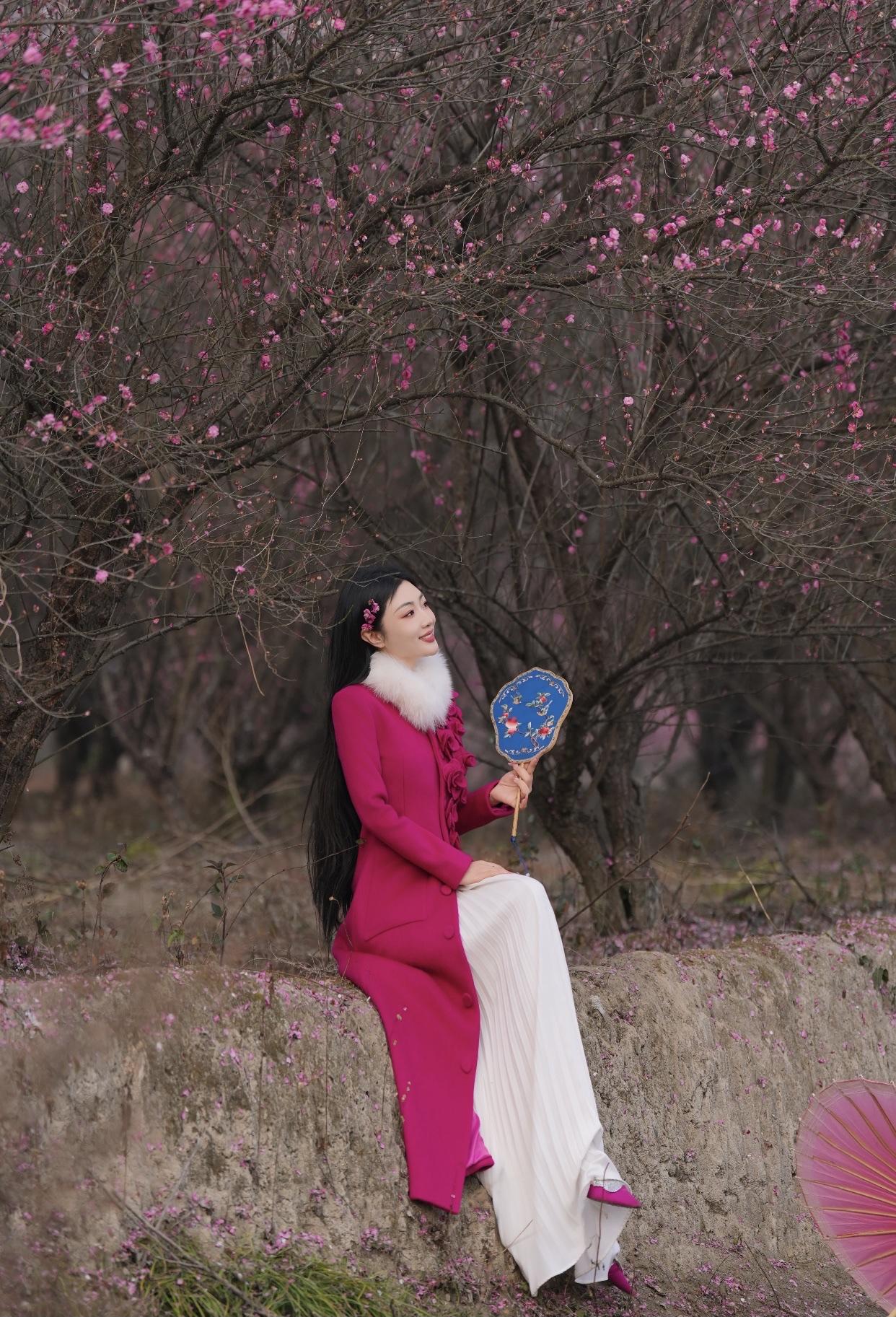 粉衣美人倚花枝,笑语如花入画来。古典红裙佳人 粉裙花影 粉裳倚秋韵 粉裳花影照