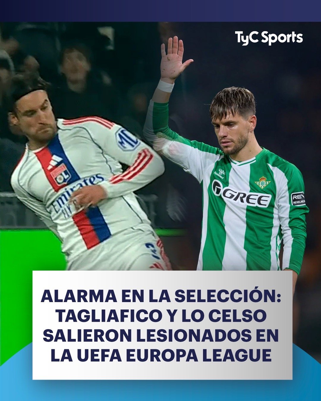 🚑伤情通报:欧联杯第七轮比赛,塔利亚菲科和洛塞尔索均受伤被迫离场。年轻人0比1里昂的比赛上半场进行到第17分钟,年轻人后卫格雷戈里向后倒地,压在了塔利亚菲科的右腿上,塔队在中场休息时被换下。希望伤势不严重,满血回归。因为国家队这个位置上并没有太多选择。洛塞尔索第62分钟替补登场,仅仅五分钟后,他就因伤无法继续比赛离场。在皇家贝蒂斯0-2负于塞萨洛尼基后,主教练佩莱格里尼表示他将至少缺席接下来的两场比赛。洛塞尔索塔利亚菲科关注阿根廷球员