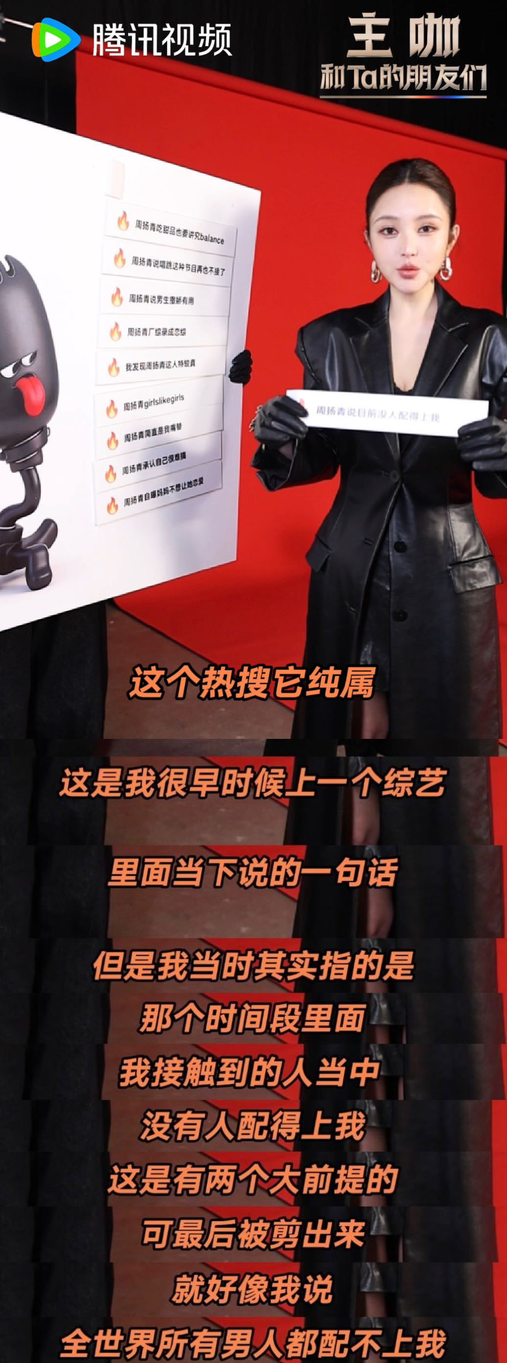 周扬青说现在有人配的上我了 周扬青的澄清来得刚好!当年撂狠话实属情境所需,没想到吓退良缘。如今轻松调侃“有人配得上”,眼角眉梢都是笑意。桃花运请速速回归,我们都等着喝喜酒呢!