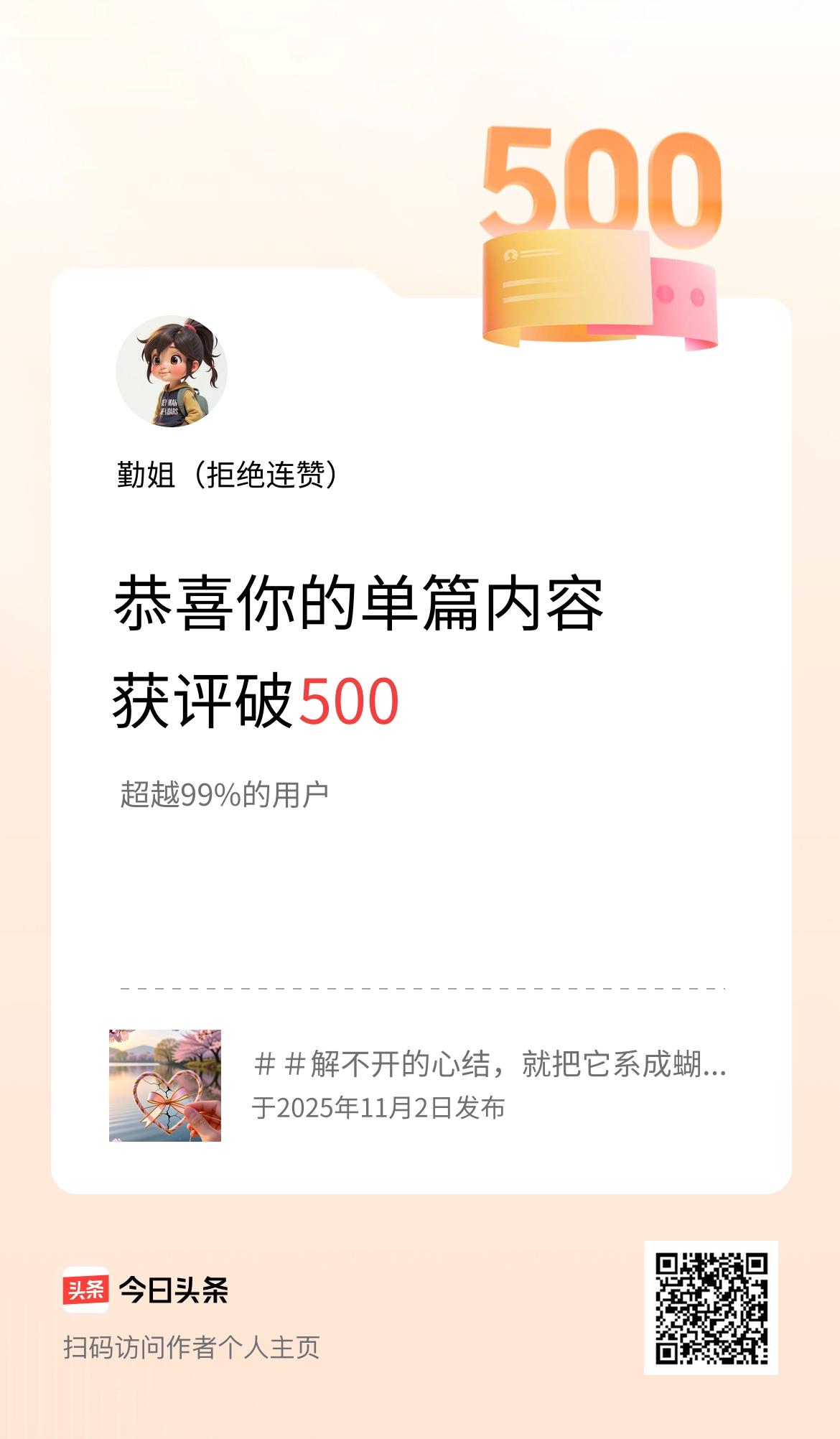 单篇内容获评论量破500啦!
