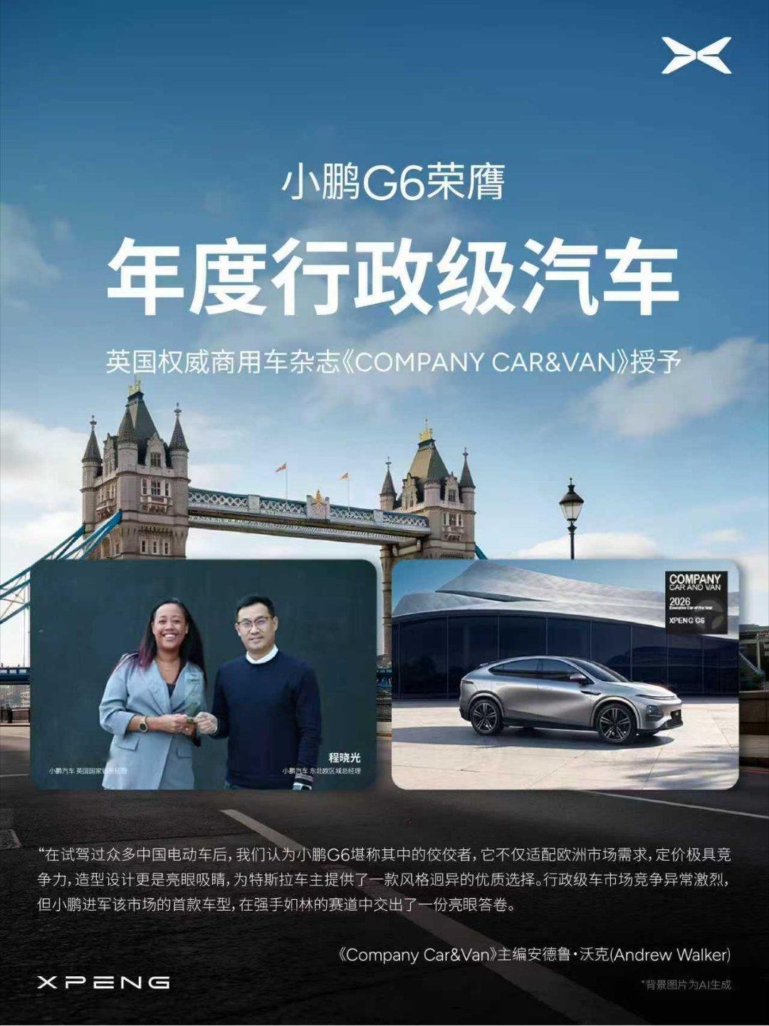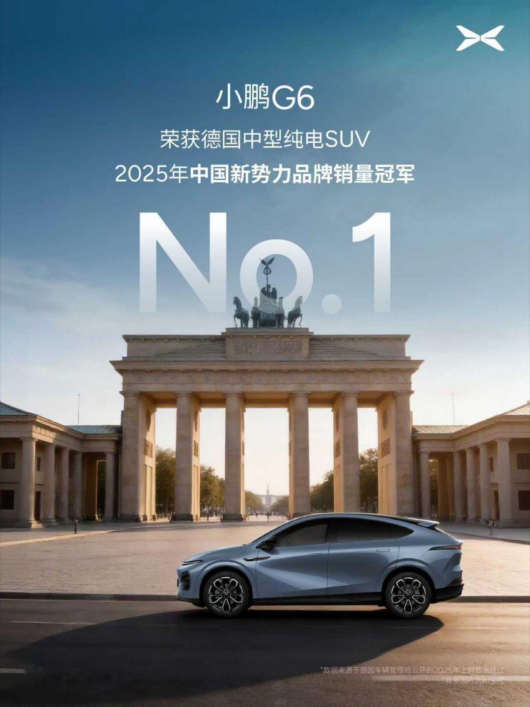 小鹏G6斩获德国中型纯电SUV年度销冠小鹏G6登顶法国12月纯电中国品牌销冠小鹏G6欧洲市场再传捷报,凭借六项全能竞争力,斩获德国中型纯电SUV年度销冠,同时登顶法国12月中国纯电品牌销量榜首。此前该车已在挪威、丹麦、芬兰等国多次拿下同级月度销冠,市场认可度持续攀升。权威口碑层面,小鹏G6先后荣膺英国“年度行政级汽车”、丹麦“2025年最受欢迎中国车”称号,德国第3000台车主更是对其智能体验、续航表现、内饰质感给予高度评价。2026款车型焕芯升级,全系标配图灵AI芯片,以科技平权理念实现“加配不加价”,持续夯实产品硬实力,彰显中国智能汽车的全球竞争力。