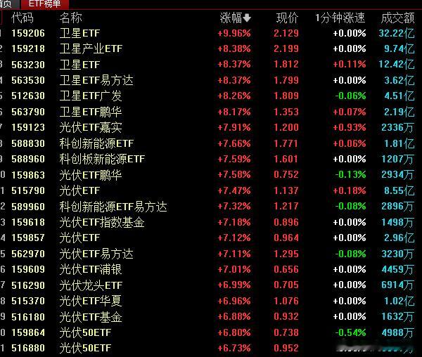 今天是航天和新能源光伏涨得好