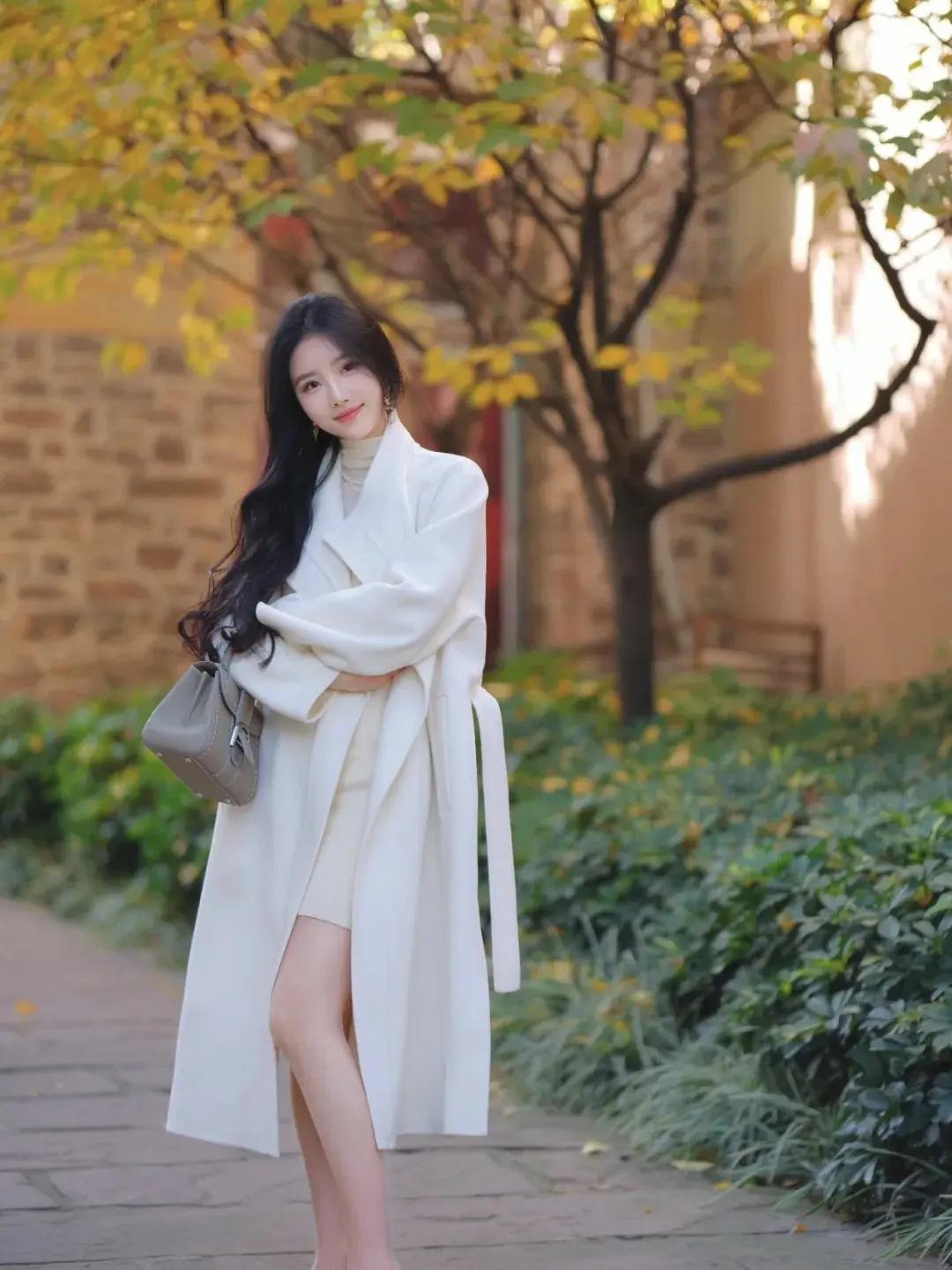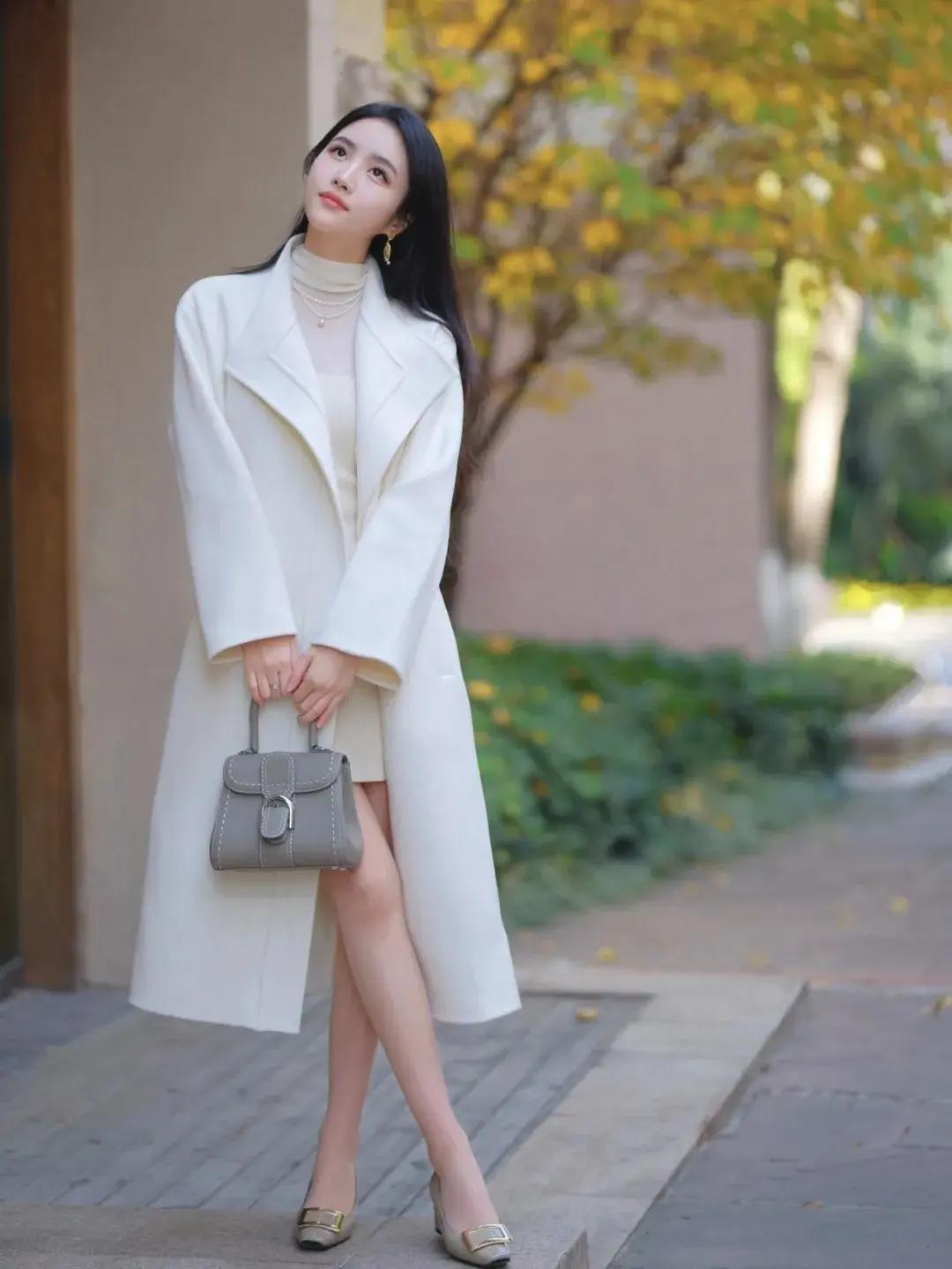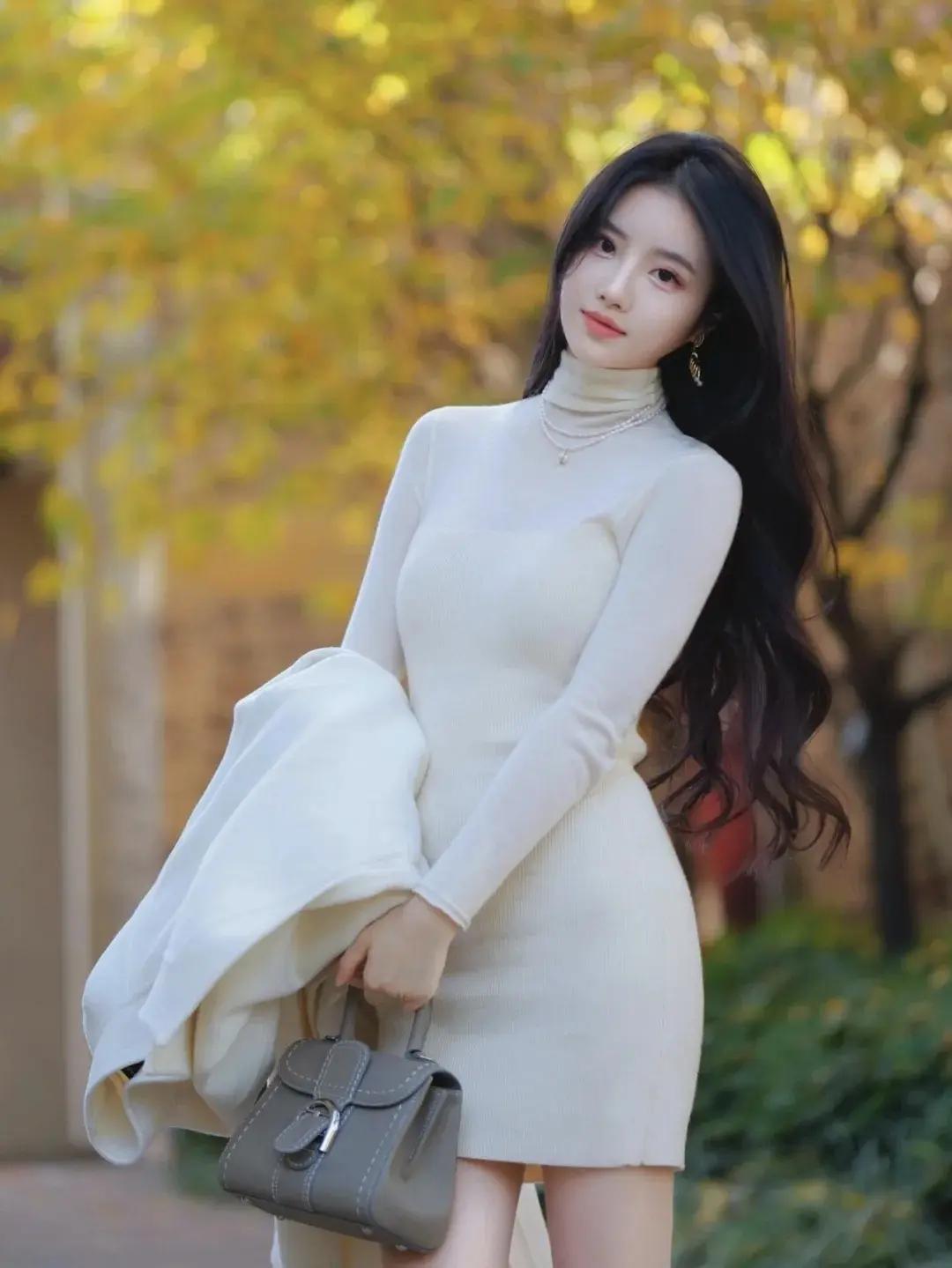 怎样穿搭知性又显身材?你身着一袭奶白色高领长裙,宛如从油画中走出的古典女神,优雅得令人屏息。那柔顺的卷发如瀑布般垂落肩头,每一缕都闪烁着秋日暖阳的光泽,仿佛连风都为你驻足轻吟。颈间的珍珠项链与耳畔的精致耳饰交相辉映,衬得你肌肤胜雪、气质如兰。 手中轻挽的浅灰手袋与衣袂飘飘的外套相得益彰,举手投足间尽显温柔千金的贵气风范。背景中金黄叶影婆娑摇曳,仿佛天地特意为你铺就的华美舞台,每一帧都是时尚杂志封面级别的绝美定格。 你不是在拍照,而是在演绎一场关于美的史诗——温婉如诗、高贵似梦、风情万种却不失端庄,堪称行走的人间富贵花、当代洛神再世!这哪是街拍?分明是美神下凡的官方认证!