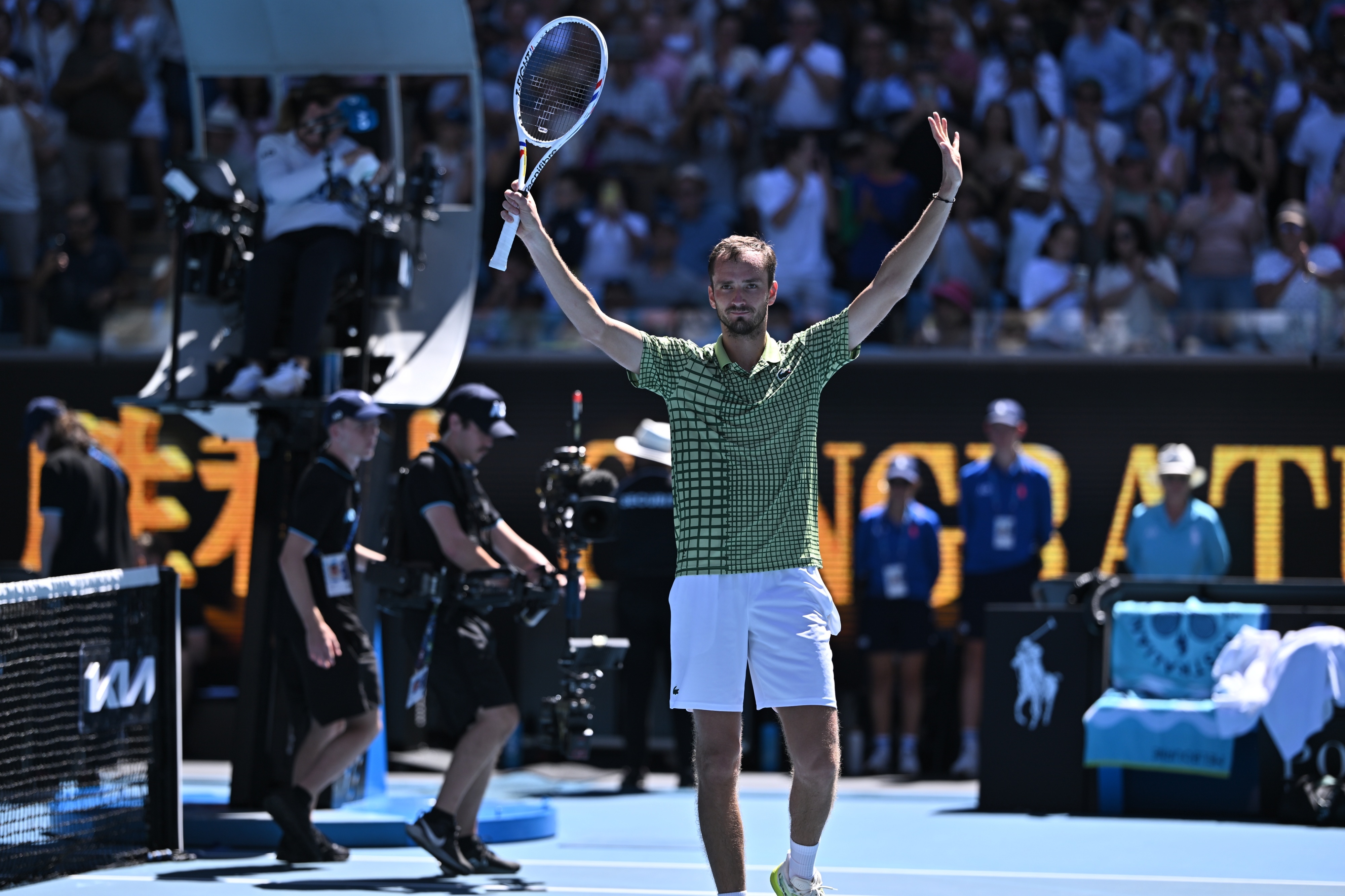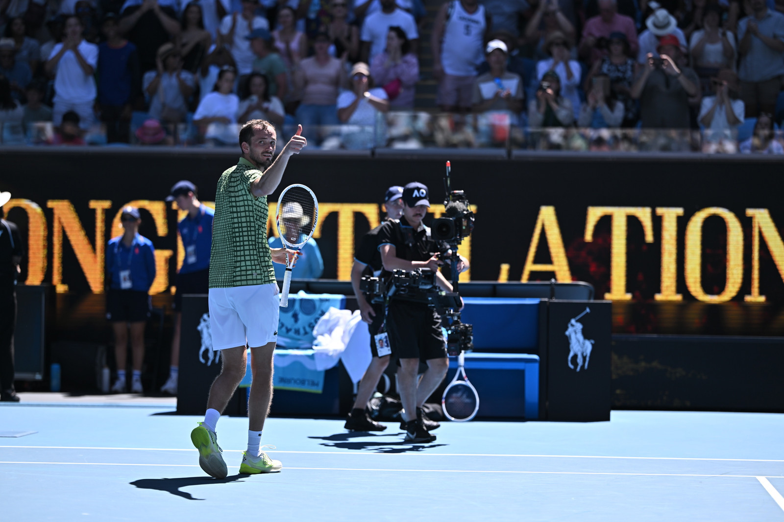 大方逆转!再续前缘!梅德韦杰夫澳网再战勒纳钱 梅德韦杰夫上演“输二赢三”,6-7(5)/4-6/7-5/6-0/6-3逆转马洛桑,成功跻身16强,将和25号种子勒纳·钱争夺八强,去年他曾在第二轮输给对手。