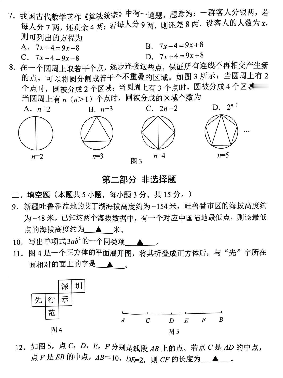 深圳市福田区七年级数学期末试卷,一套比较友善的试卷。数学 初中数学 教育 万唯中考全国中考真题2026重难题新考法刷题练习题型推荐精选
