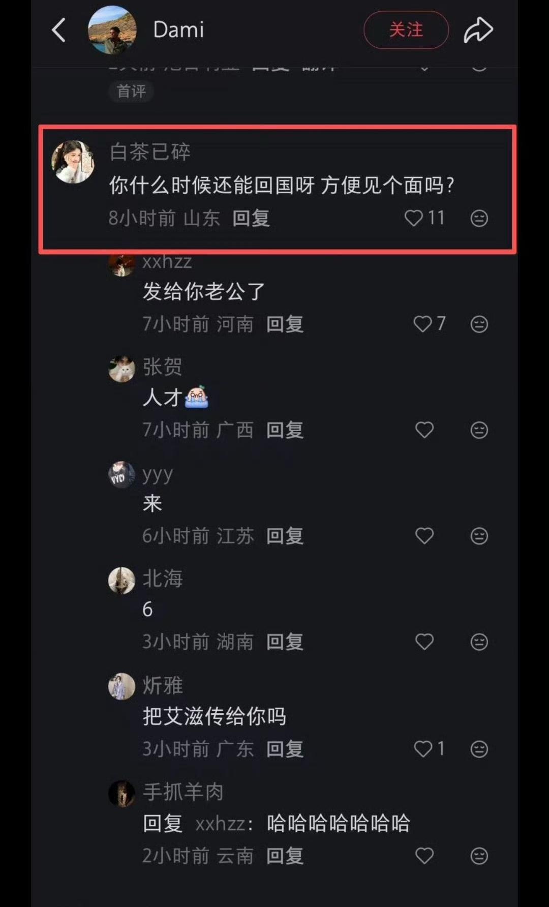后续!近日,一位中国姑娘,她在一外国人发的帖子里评论到“你什么时候还能回国呀,方便见个面吗?” 如今她改了名字,删了评论,清空了之前自己发的内容,然后发帖举报网友们造谣… 话说网友们发的都是她自己的评论截图,话也是她自己说的,怎么就成造谣了….