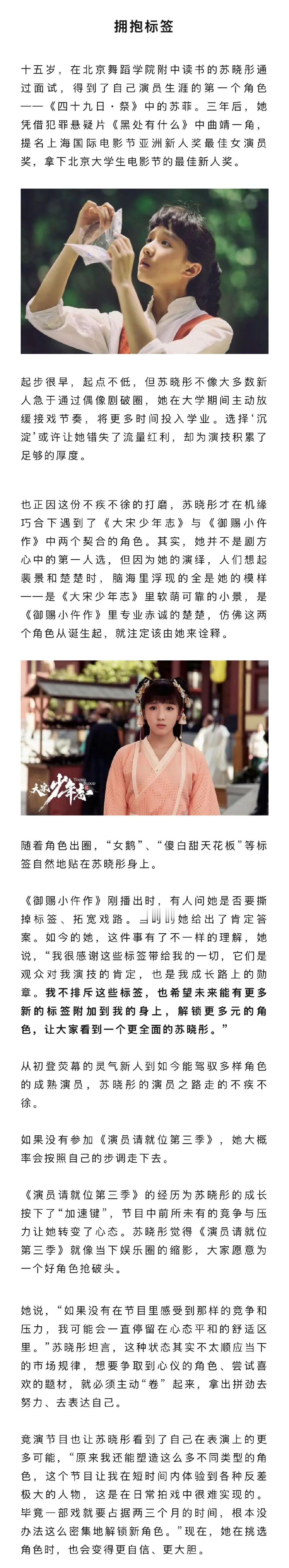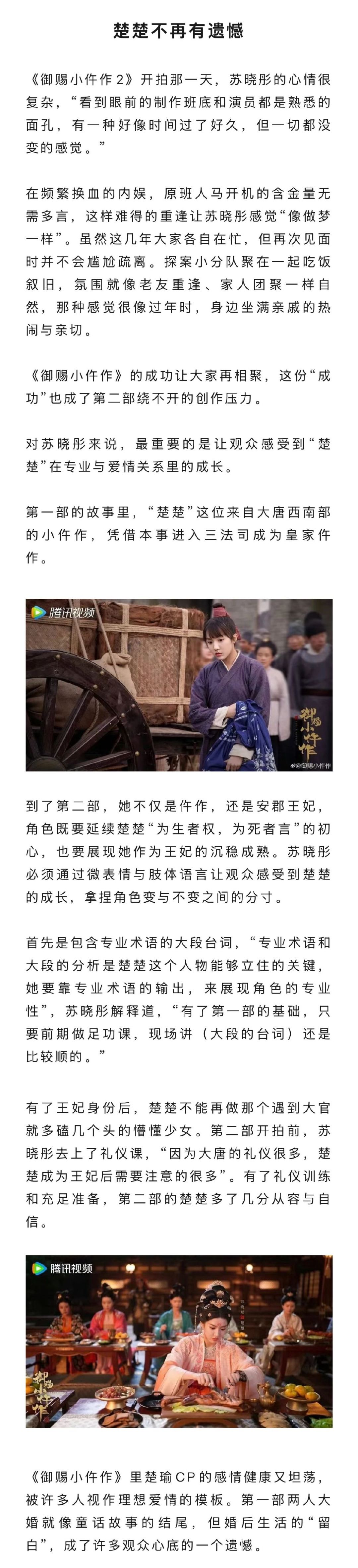 苏晓彤说塑造楚楚是自己的转折点 苏晓彤感谢高叶指引她走出迷茫 新浪娱乐“传闻中的她”专访苏晓彤,解锁《御赐小仵作2》幕后心路。五年间,她从无名新人成长为甜妹代名词,谈及再演楚楚的心境、《演员请就位3》带来的蜕变,字字皆是对表演的赤诚⬇