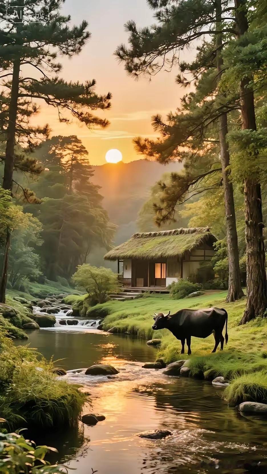雪覆竹间茅舍暖, 壶开农屋酒杯香。 横批:《茅舍与酒杯》