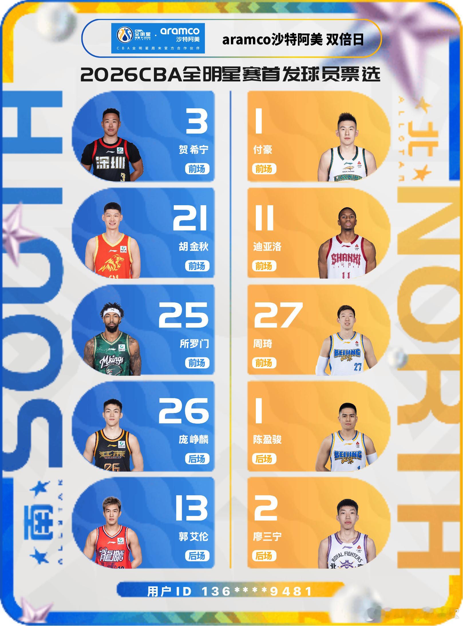 来吧,瞅瞅我的CBA全明星双倍投票日的人选。历年来,我的南区后场的搭档是:徐杰和胡明轩。今年,徐杰和小胡我已经号召我的亲戚朋友们给他们上票了。但是今天我要给庞峥麟和郭艾伦。理由:前者的运控真的不得不让人特别喜爱,后者16个赛季依然是老中青三代人的精神支柱+全明星为数不多的耍宝大神!外援的选择:所罗门,所罗门所罗门场上都是所罗门,有梗!小贺和胡金秋这二位就不解释了,因为👍北区:廖三宁,陈盈骏,赵睿,我会换着投。周琦,付豪值得一票。花式给CBA全明星拉票2026CBA全明星周末