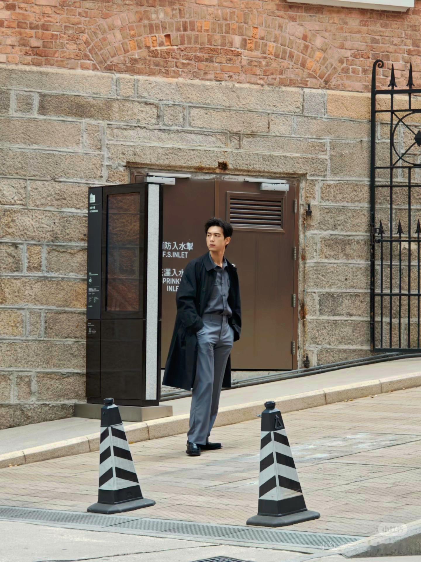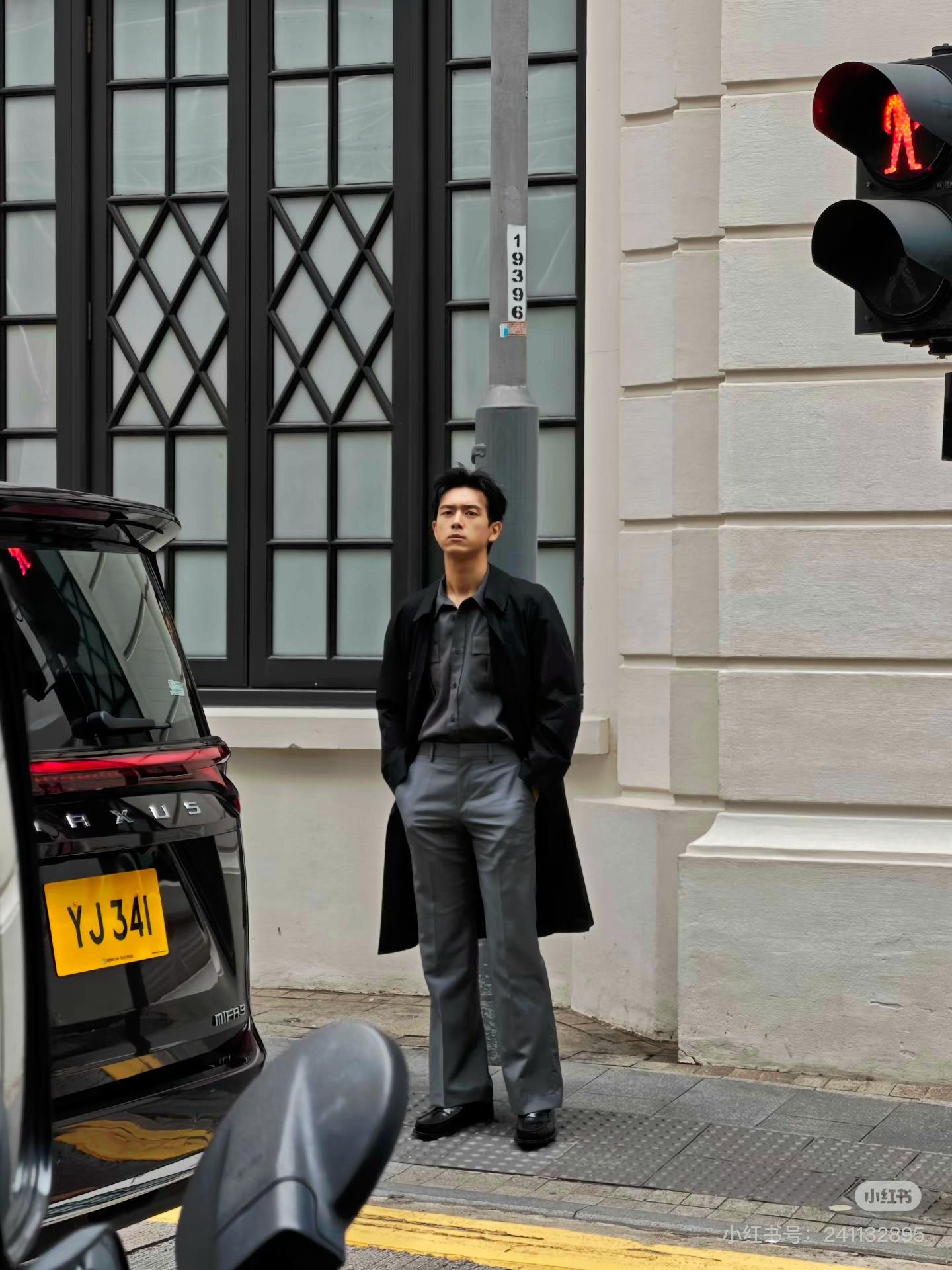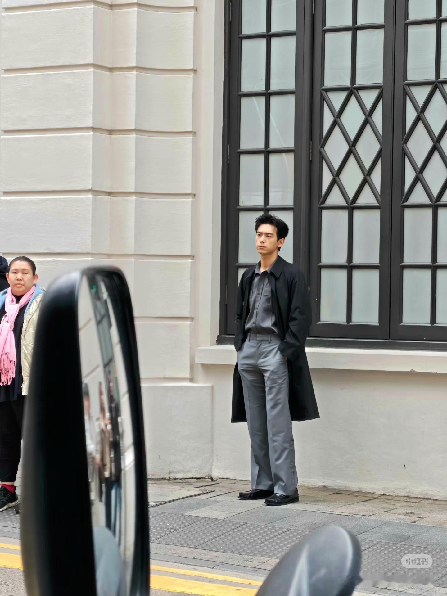 香港街头偶遇李现拍照期待今天的prada活动