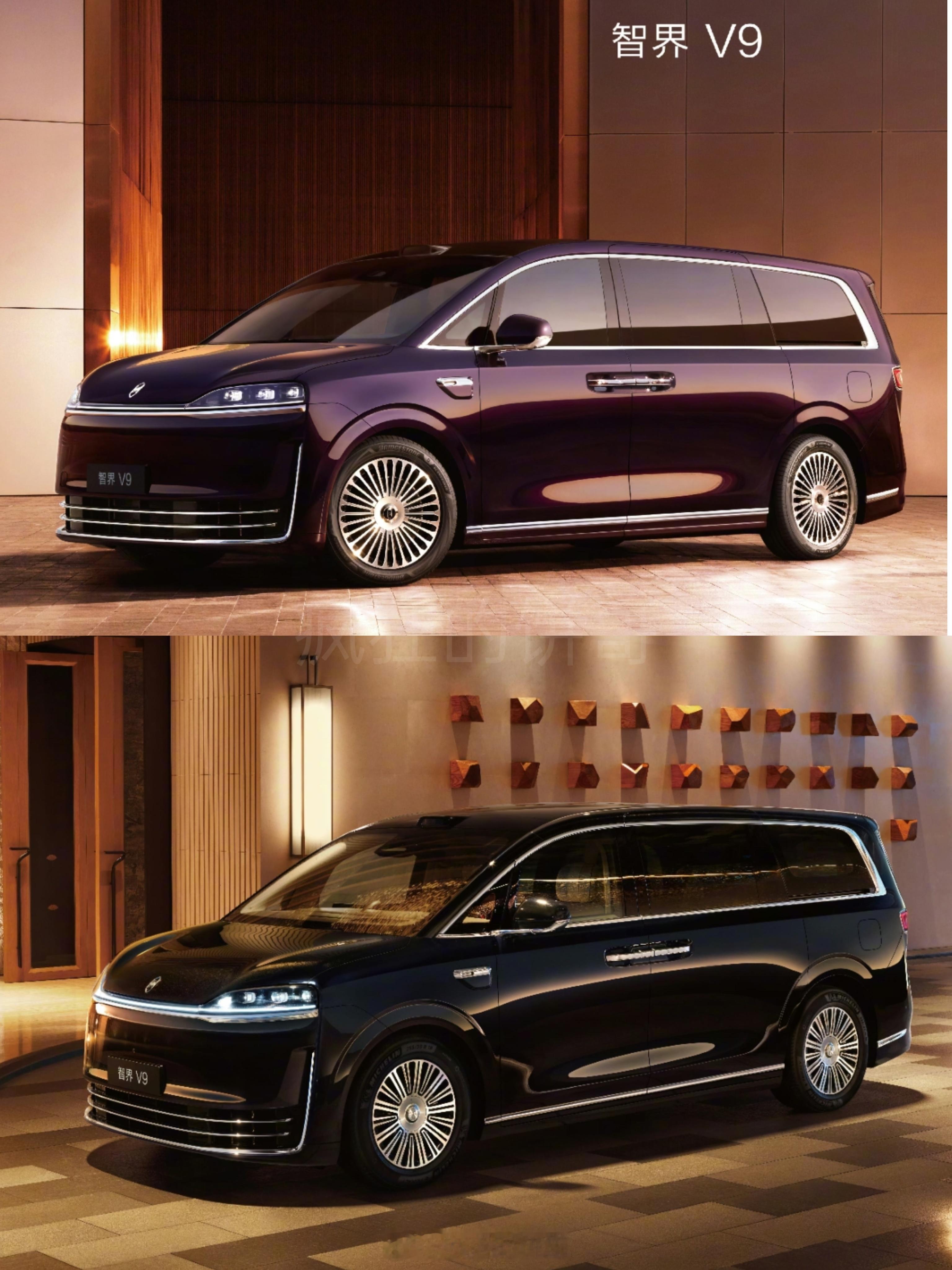 智界V9的紫黑两款颜色哪个好看?我觉得应该还要再出一款双拼吧,这个车上半身下半身的造型,很适合双拼色。新能源汽车