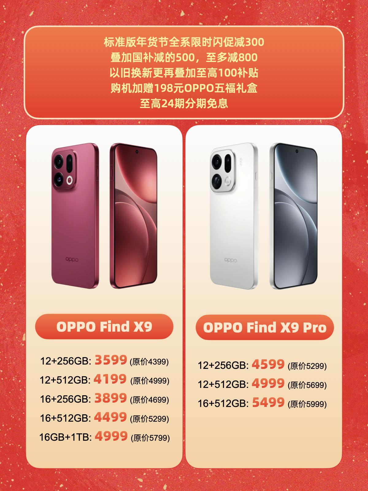 O粉原地过年,Find X9居然干到了3599 老粉都知道,不到骨折价我不轻易喊话,但这次是真的香、疯、了! 😱 想趁着春节前换新机的O粉们快集合! 院长帮你们把这波福利盘得明明白白,看完直接去冲,不谢!👇 今年OPPO年货节撞上国补🧧,真的是史无前例的力度! 🧨年货节闪促减300+国补500,两重BUFF叠加至高省800,而且购机就送价值198的OPPO五福开运礼盒。如果参加以旧换新还能再叠加至高100的额外补,以及可选至多24期免xi。 另外,OPPO还专门打造了一套新年版配件(P3),包括Find X9财神马 / Pro收穫马保护壳、100W小方瓶鸿运版充电器、磁吸能量卡、100W 移动电源),过年带回家氛围感直接拉满,寓意“马到成功”。 ✨OPPO Find X9: 12+256GB|3599元(原价4399,省800) 12+512GB|4199元(原价4999,省800) 16+256GB|3899元(原价4699,省800) 16+512GB|4499元(原价5299,省800) 16+1TB |4999元(原价5799,省800) 适合人群:追求极致性价比、注重手感、学生党、日常办公。 🤔院长点评:3599的价格能拿下这款旗舰,还要什么自行车? 核心性能和标准版影像已经足够应付过年拍全家福、刷剧、打游戏,手感更轻便,是大多数人的首选。 ✨OPPO Find X9 Pro 12+256GB|4599元(原价5299,省700) 12+512GB|4999元(原价5699,省700) 16+512GB|5499元(原价5999,省500) 适合人群:摄影发烧友、Vlog达人、对续航有更高求的宝子。 🤔院长点评:如果你想要更出色的拍照效果和长续航表现,那多花1000块上Pro绝对值! 还没冲的宝,这次可以闭眼跟院长上车了!过些时日快递停了可就真的要等明年了~ OPPO五福年货节OPPOFindX9 OPPOFindX9Pro OPPO年货节 新年换新机 国补 手机推荐 数码大实话 O粉集合