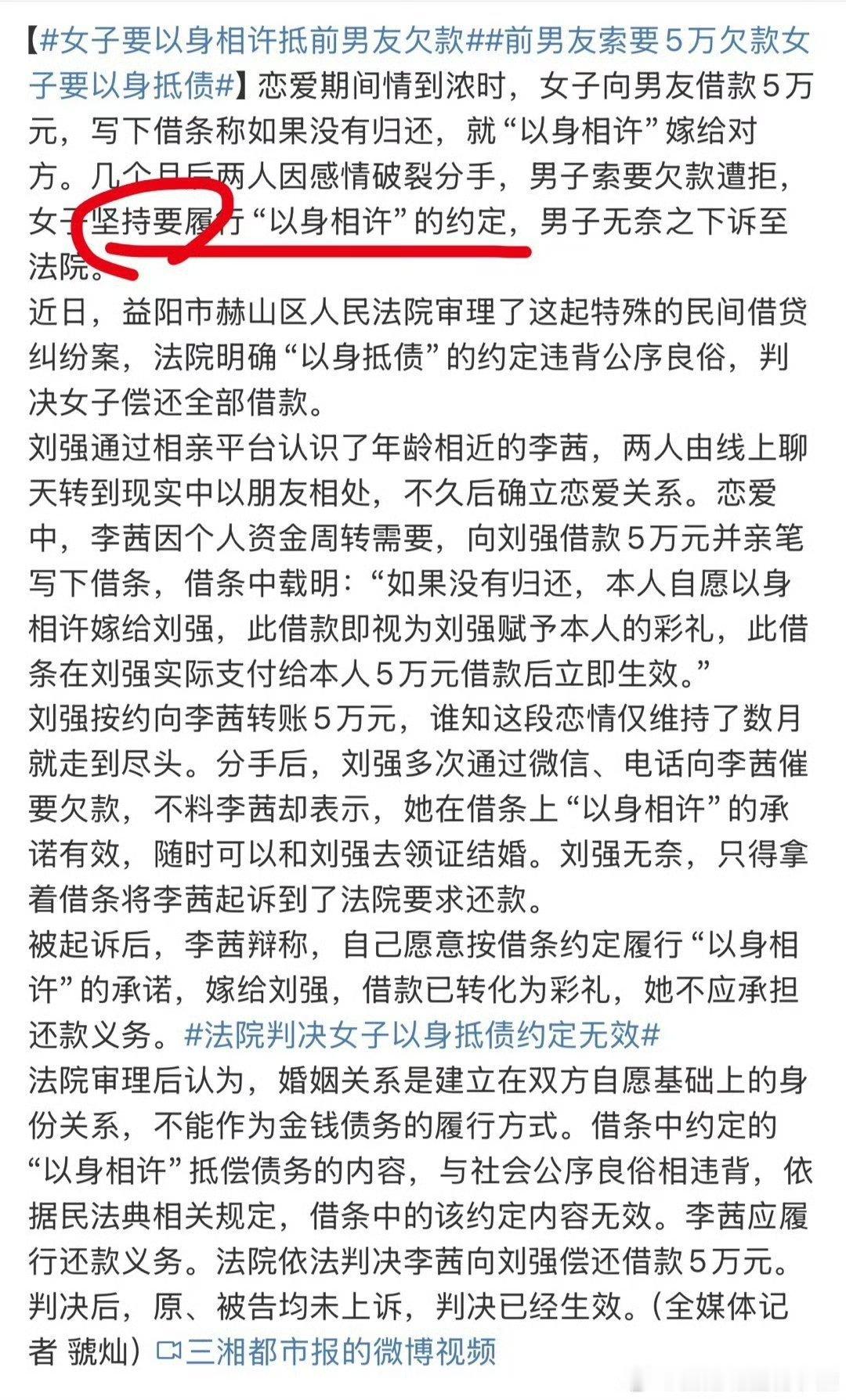 女子要以身相许抵前男友欠款 看来女子既不想还钱也不想分手,还可能故意想坑害前男友。明明恋人已经分手,女子还坚持以身相许要去领证,这典型是赖账。万一两人领证之后,女子在设计告男子强奸,男子很可能不仅要不到钱得不到人,还可能被送进监狱。女子算盘打的太好,与这样的人恋爱太可怕。