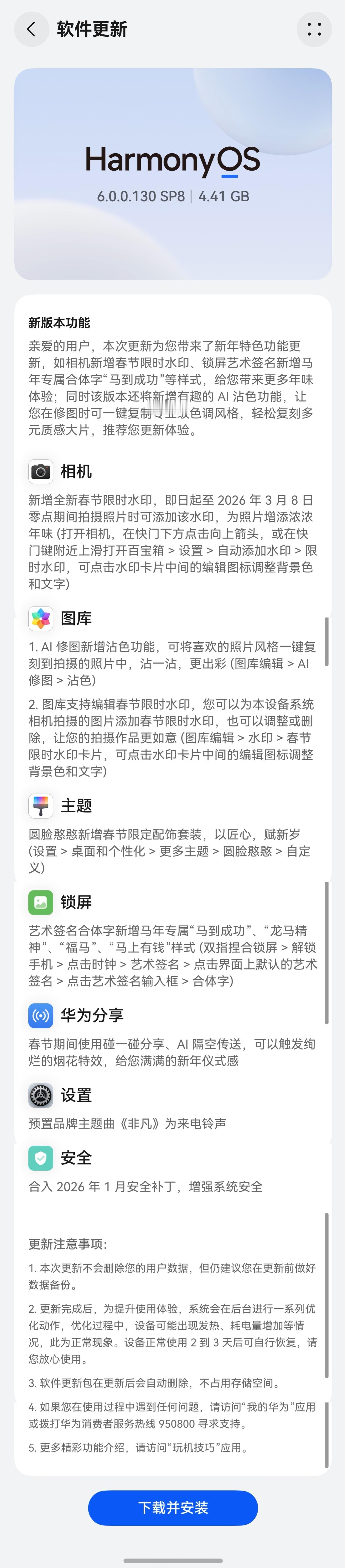 Mate80系列的6.0.0.130更新来了,新春水印、AI沾色、新主题、艺术签名